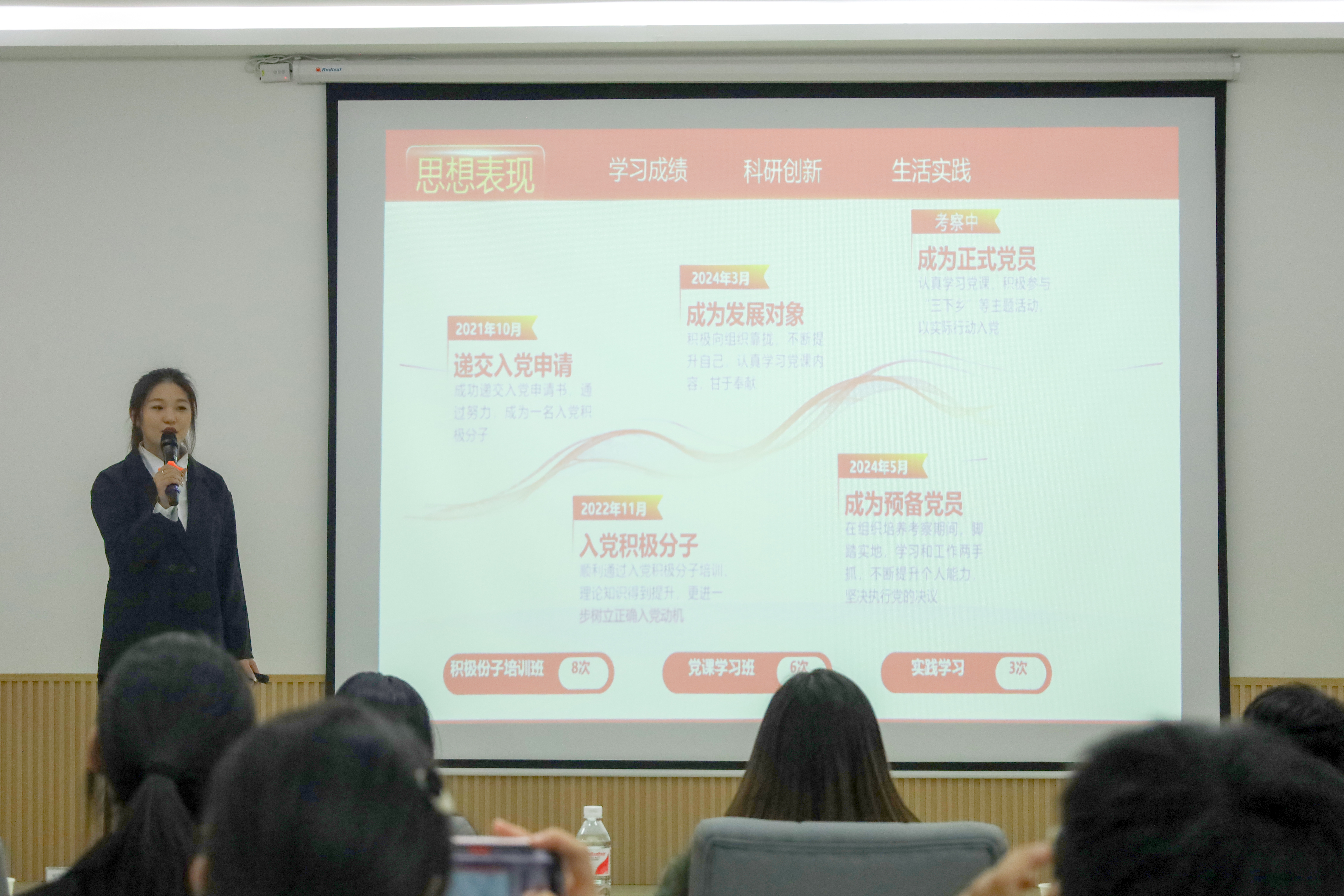 在答辩现场,候选人依次登台,通过精彩的 PPT 展示与自信满满的演讲,分别从道德模范、学风建设、自主创业、志愿服务、文体活动等多维度,生动展现各自申报领域取得的成果和个人学业及生涯规划。候选人中有的在学术领域深耕,学习成绩优异,发表多篇高水平论文,成功申请多项专利,展现出极强的钻研精神和创新思维;有的积极投身公益活动,关爱弱势群体,以实际行动诠释社会责任与担当;还有的在文化艺术舞台与体育赛场上绽放光彩,凭借出众的才艺和不懈的努力,丰富校园文化生活。选手们以谦逊之姿展示成果,相互砥砺,且凭扎实学识与实践经历深入阐述,尽显“上善若水 笃学敦行”的校训内涵。