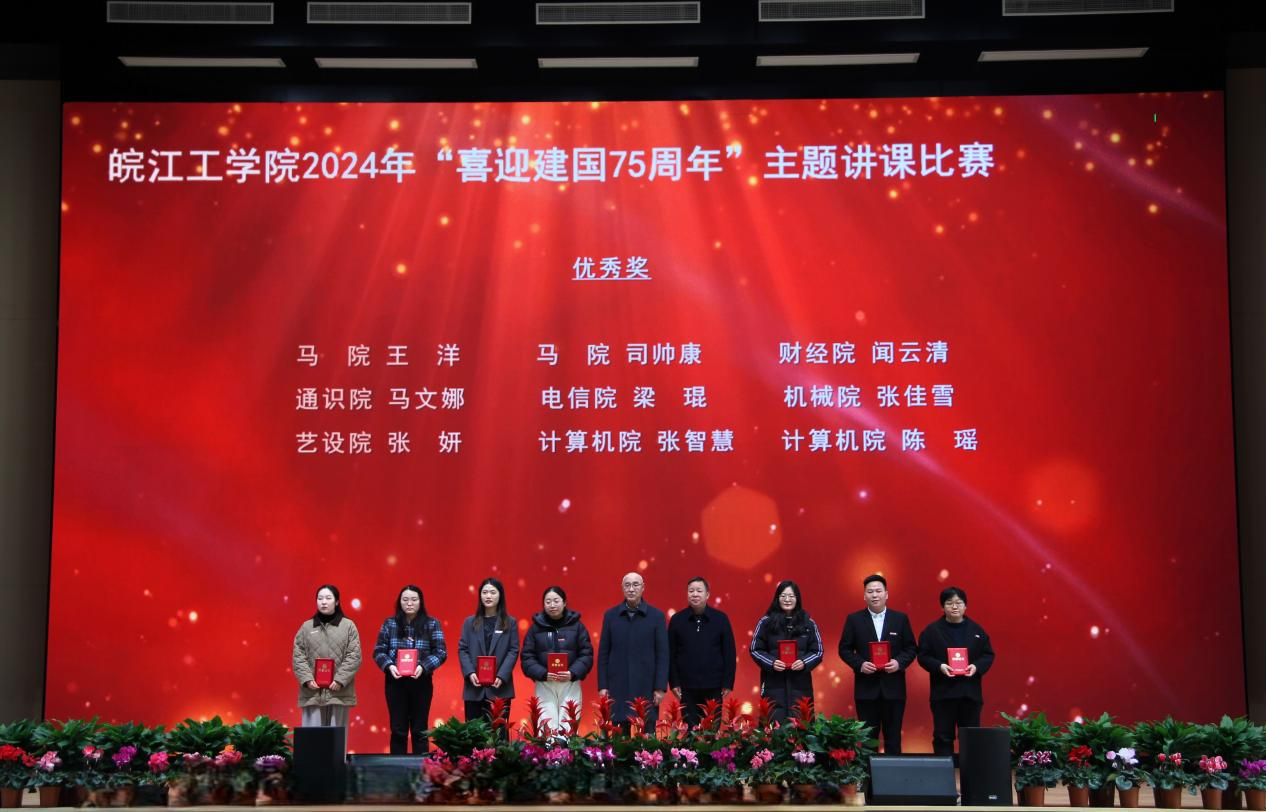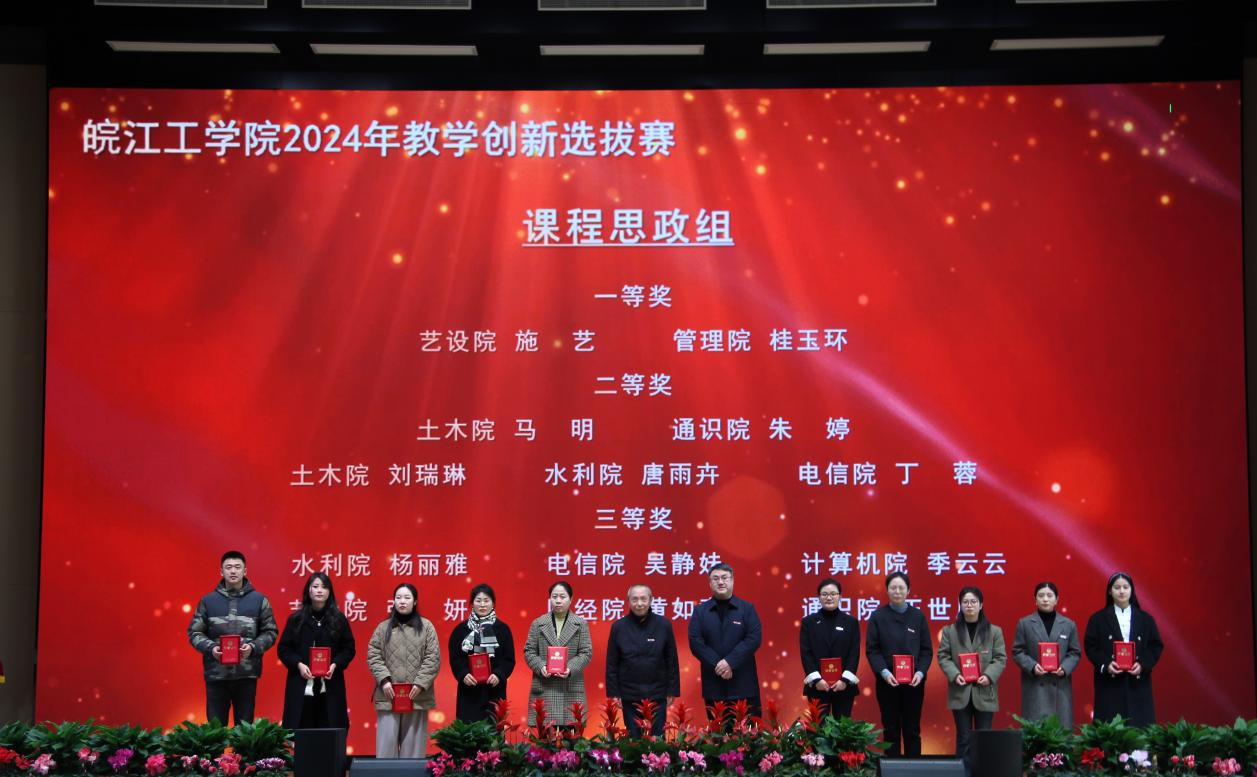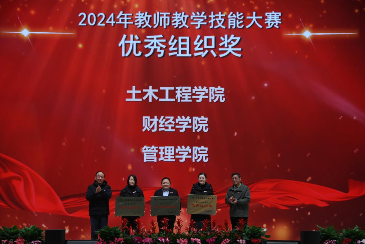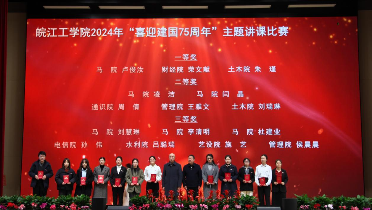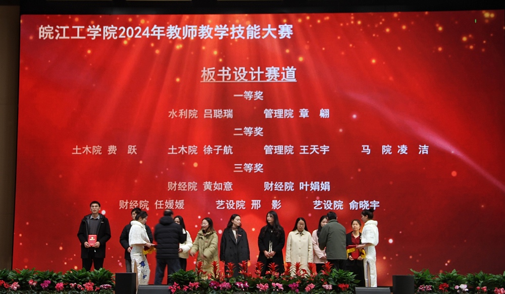 会上对学校2024年度各类教学竞赛获奖及教学成果获奖进行表彰和颁奖,校党委副书记孙良主持颁奖仪式。孙良宣读了学校表彰决定,董事长和校领导向2024年教学创新选拔赛、喜迎“新中国成立75周年”主题讲课比赛、教师教学技能大赛所有获奖人员(单位)以及2024年校级教学名师和教坛新秀、安徽省教学成果奖获得者颁发了荣誉证书。