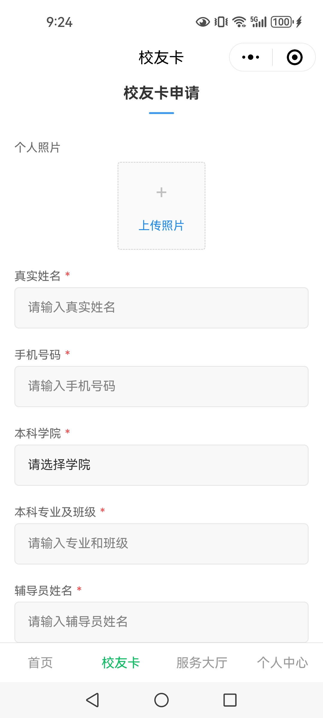 第三步:填写真实信息,上传证件照片,完成注册,管理员后台审核通过后,领取电子校友卡。(照片务必真实证件照,便于入校时门岗核对。非真实本人照片,审核会驳回)