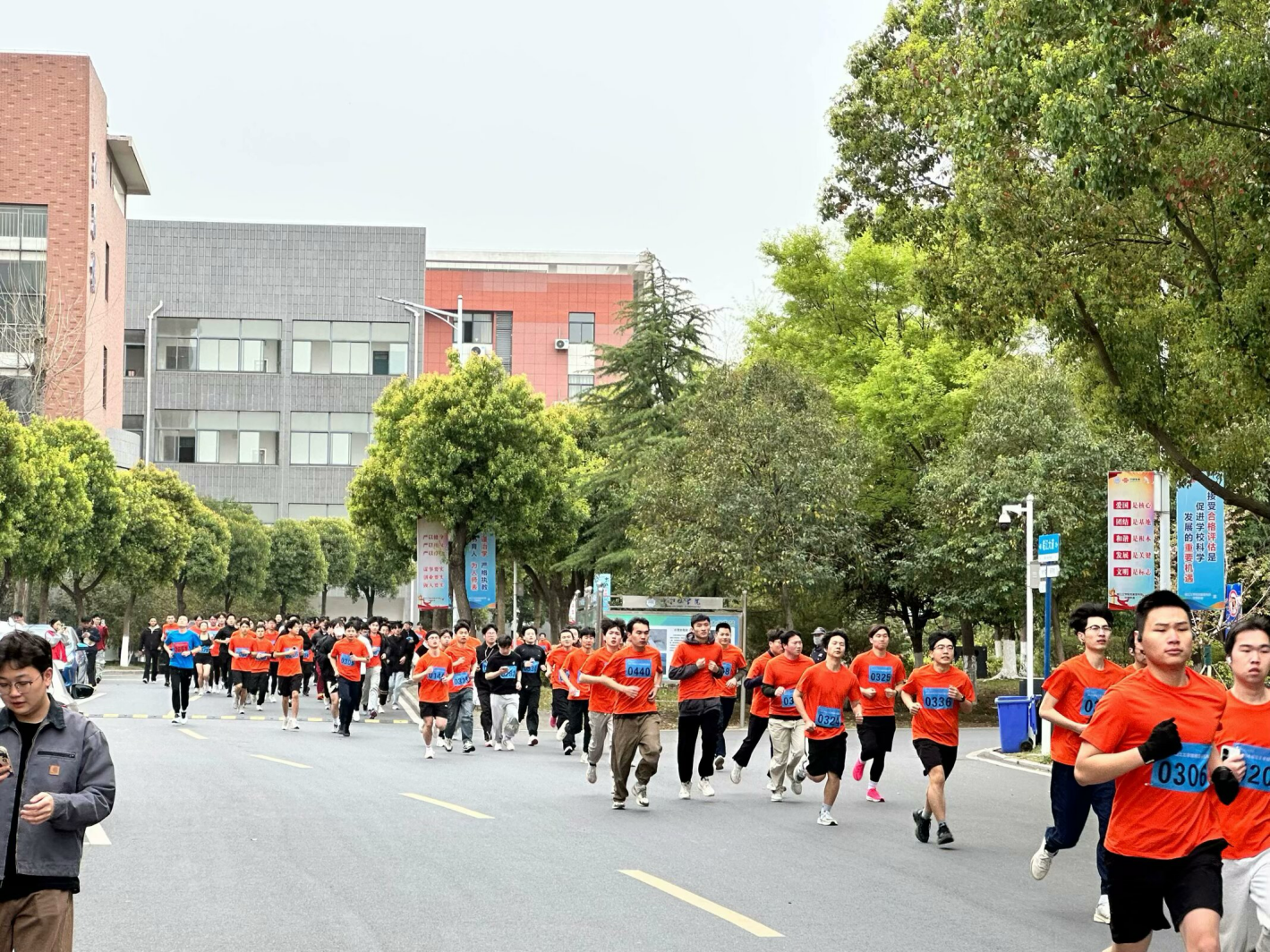 蜿蜒贯穿校园核心区的赛道上,沿途志愿者手持彩旗指引方向,医疗观察点与补给站星罗棋布。学生组10公里与教师组6公里的双赛道设计,既彰显竞技精神又体现人文关怀。绿荫道旁加油声此起彼伏,樱花纷飞中掠过一道道疾驰的身影,运动活力与春日光影在校园完美交融。