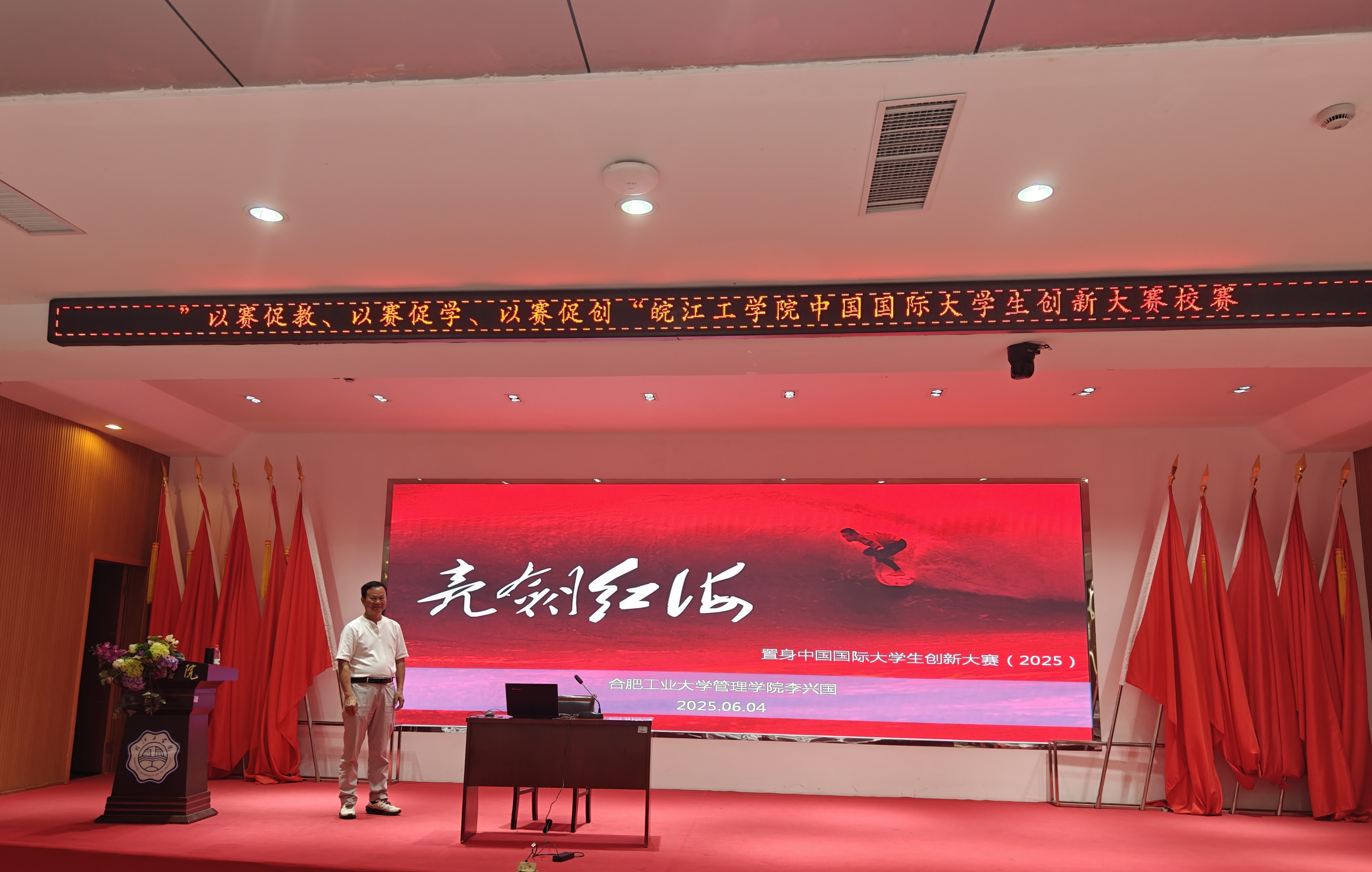 6月5日的校赛现场,44支参赛团队通过精彩的答辩环节,充分展现了皖江工学子的创新实力。李兴国教授对每个项目都给予了专业点评和建设性意见。