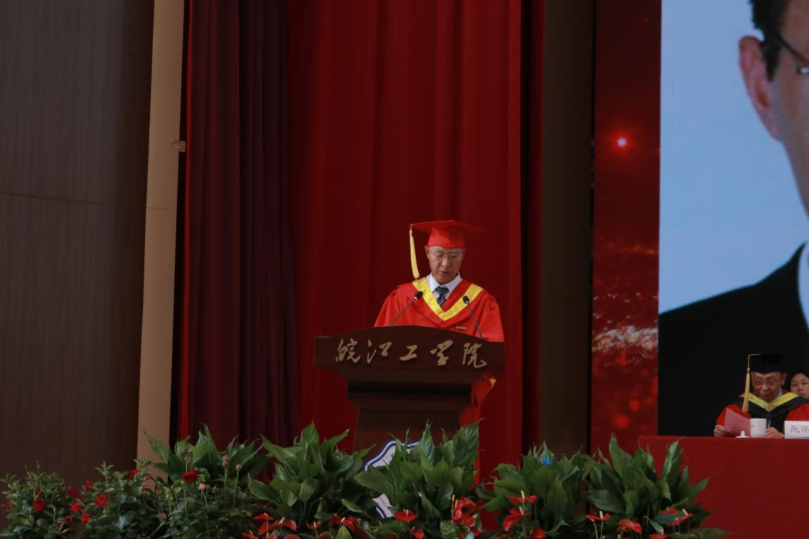 电信工程学院自动化教研室主任陈玲作为教师代表发言,她以师者的温情与期许,为毕业生送上临别赠言。“毕业是学习的新起点,愿你们保持好奇、坚守热爱,无论身处顺境逆境,都记得‘皖工’永远是你们的后盾。”陈玲老师的句句嘱托,如春风化雨,滋润着毕业生们的心田。