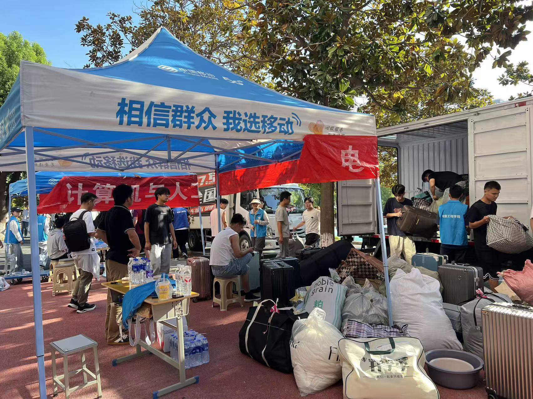 志愿服务,传递青春力量温情暖。本次搬迁中,霍里山及郑蒲港校区选派多名学生志愿者作为搬宿现场工作的骨干。他们身穿彩色马甲、脖子上挂着志愿工作证,穿梭在搬迁现场、食堂门口。志愿者们在多个岗位协同作战,在食堂门口发放解暑绿豆汤,在装车点严谨核对信息,在楼梯口耐心维护秩序、细心服务搬迁同学,用实际行动诠释着青春担当与无私奉献的志愿服务精神。