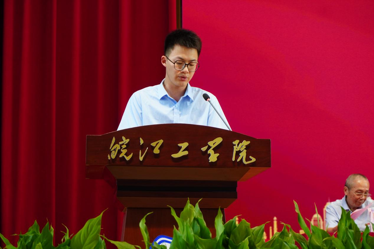 2025级电气工程及其自动化专业的秦品智同学作为新生代表发言。他回顾了备考历程中的艰辛与迷茫,分享了在工作与学习双重压力下坚持求学的坚定信念,并号召同学们在新的起点上明确目标、勤勉治学。
