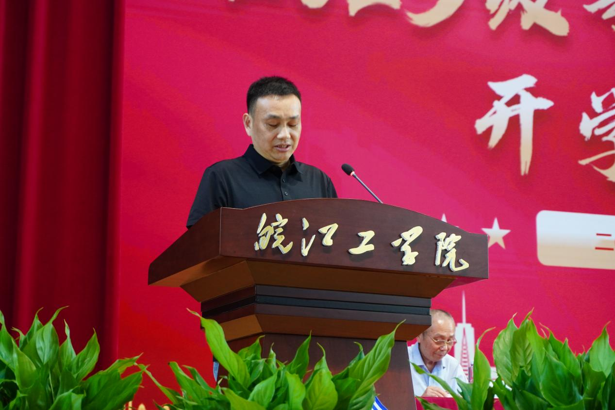 管理学院党总支书记、副院长朱良平作为教师代表,深情寄语专升本新生。他勉励大家尽快实现三个转变:从被动接受知识转向主动探索学习,从培养单一技能转向提升复合素养,从侧重个体奋斗转向注重团队合作。希望同学们珍惜时光、尊师爱学、深耕实践、勇于创新;全体教师将做学生成长路上的引路人、守护者与同行者。