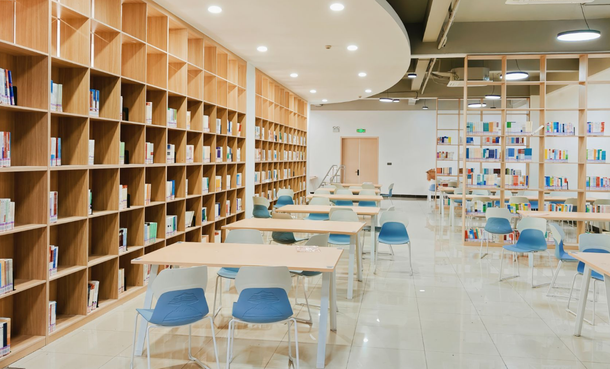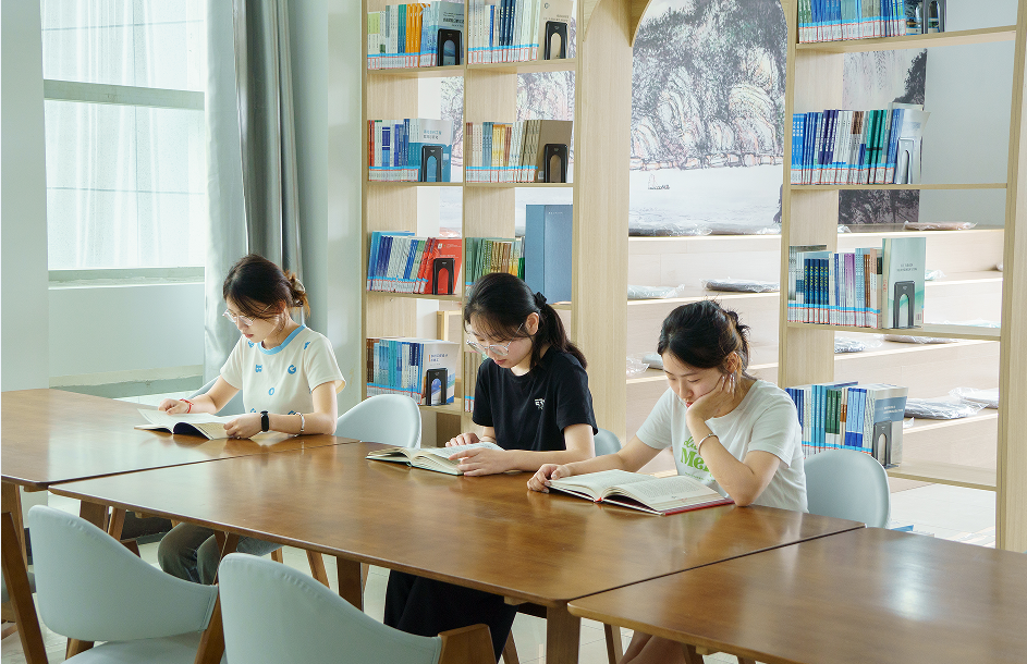 改造后的图书馆,其设计理念融合了现代与传统,创新与实用并重。内部结构则更加注重开放性与互动性,书架排列灵活多变,既适合个人沉浸式阅读,也便于团体讨论与分享。为了满足不同读者的需求,图书馆还增设了多个功能区。考研自修室是专为考研、考公的学生设置的,它可以让学生在一个熟悉的座位上安心学习。自然科学阅览室、社科阅览室配备了相关专业的书籍,便于学生使用阅览。教师阅览室专门为教师们提供学习研究的空间。学术研究区则提供了更加适合团队合作的环境,满足深层次研讨的需求。报刊阅览室订购了4.6万册期刊,为师生提供前沿信息等。