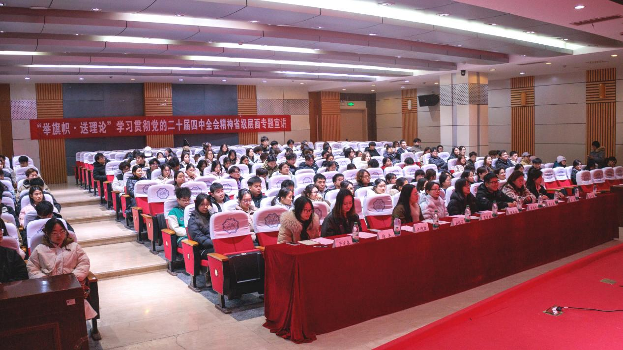 beat365于1月8日下午14:30在霍里山校区图书馆报告厅开展“举旗帜·送理论”学习贯彻党的二十届四中全会精神省级层面专题宣讲活动,安徽省委讲师团理论宣讲专家库成员、安徽农业大学马克思主义学院黄洪雷教授作专题宣讲。校院两级团干部、各组织指导教师及学生干部近300人参与宣讲活动。