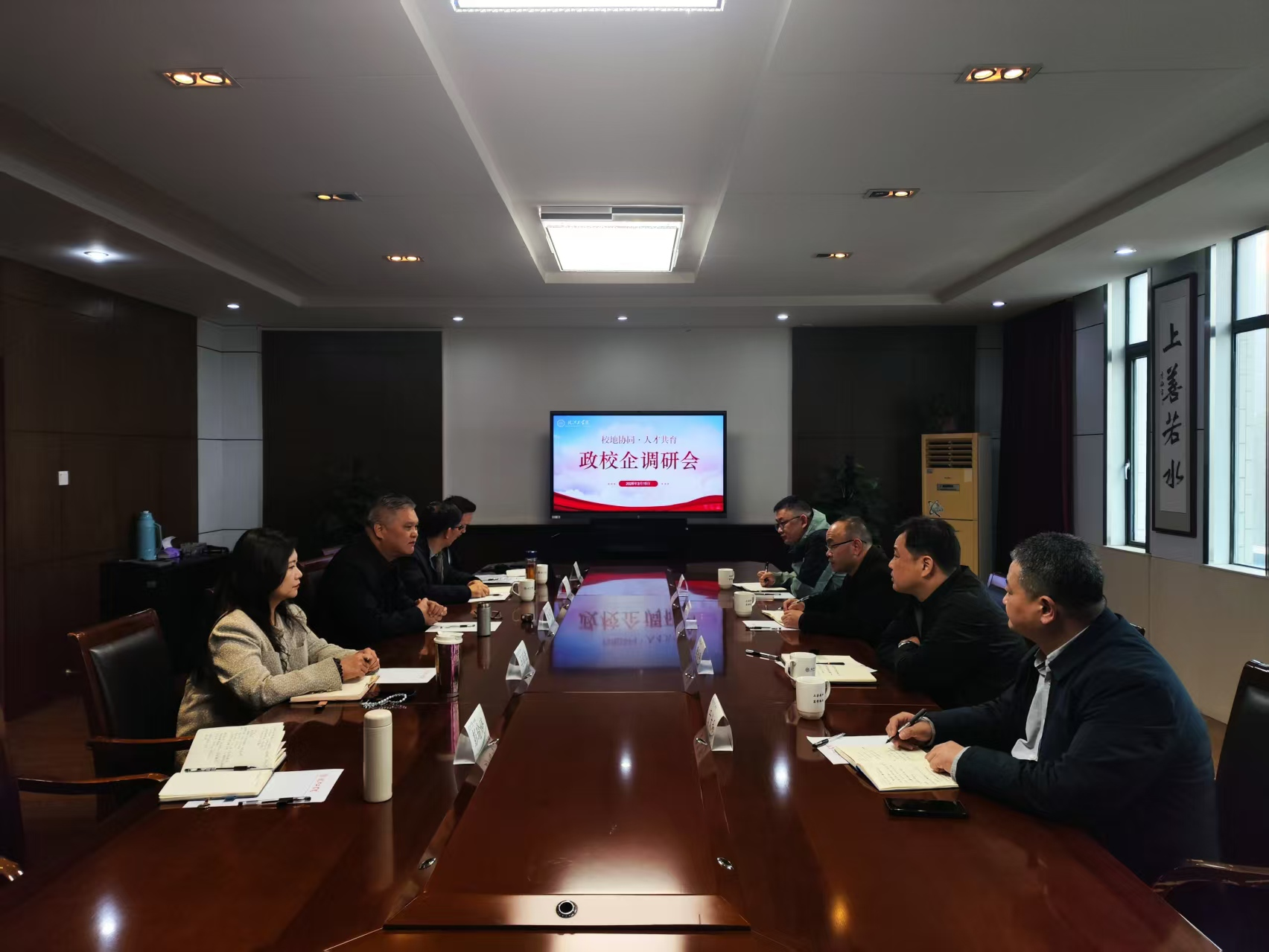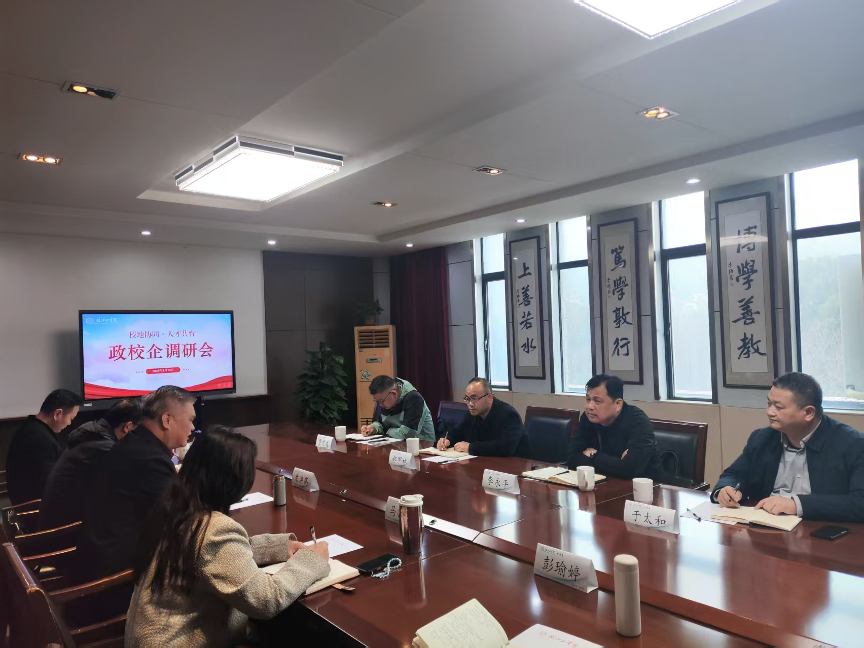 3月15日上午,beat365在明德楼404会议室召开校政合作交流座谈会。马鞍山市郑蒲港管委会主任郝甲林、副主任李永平、贾虎成、社会事业局局长于太和参加,beat365正版唯一官方网站董事长朱洪高及相关职能部门负责人参会。