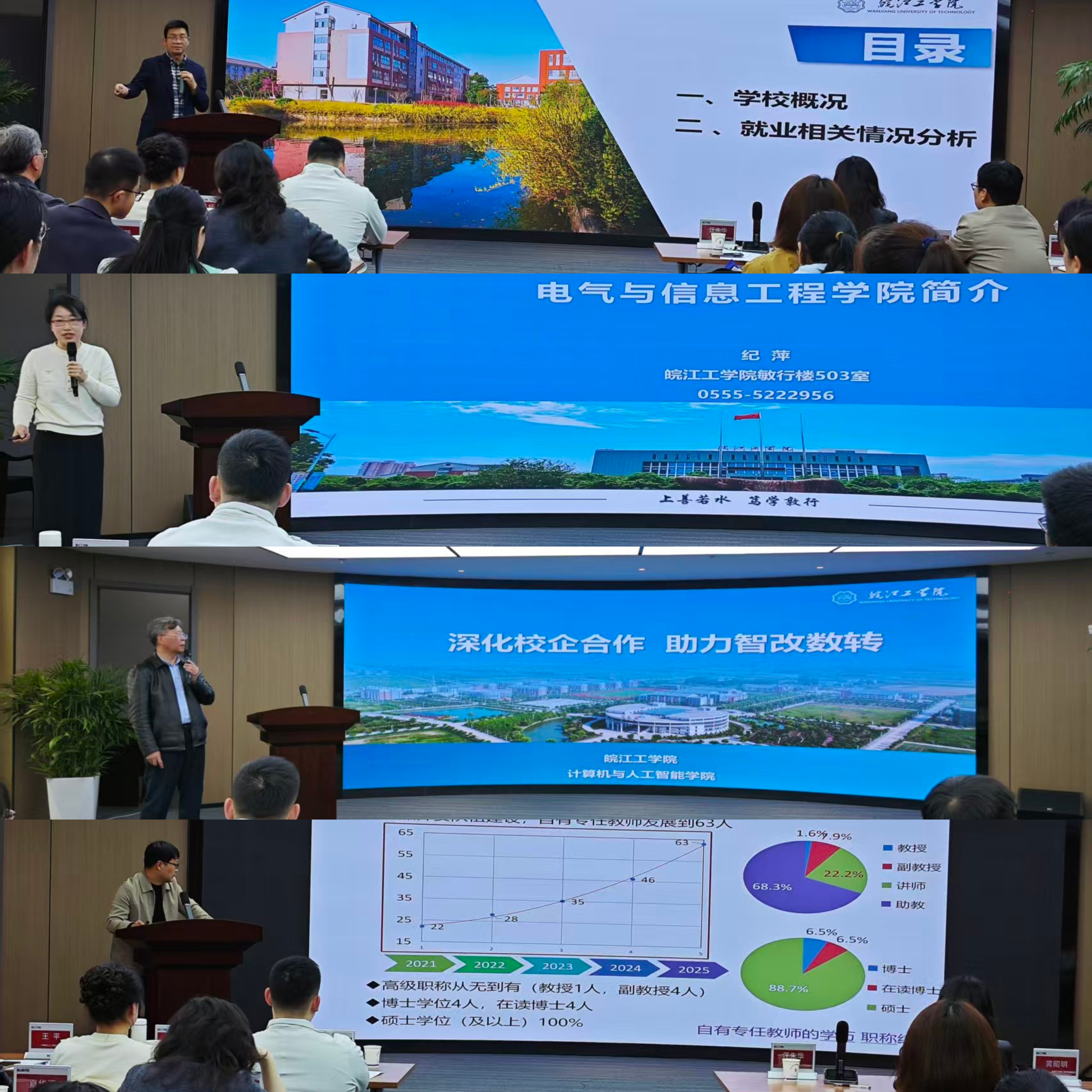 会上,beat365正版唯一官方网站学生处常务副处长汪朱华向与会嘉宾全面介绍了学校的发展历程、办学规模、学科优势与人才培养特色。学校电气与信息工程学院、计算机与人工智能学院、机械与车辆工程学院的负责人分别详细解读了各学院的专业设置、师资力量、科研成果,并重点推介了面向企业需求的校企合作模式与订单班培养方案,展现了学院在应用型、技术技能型人才培育上的实力与方向。