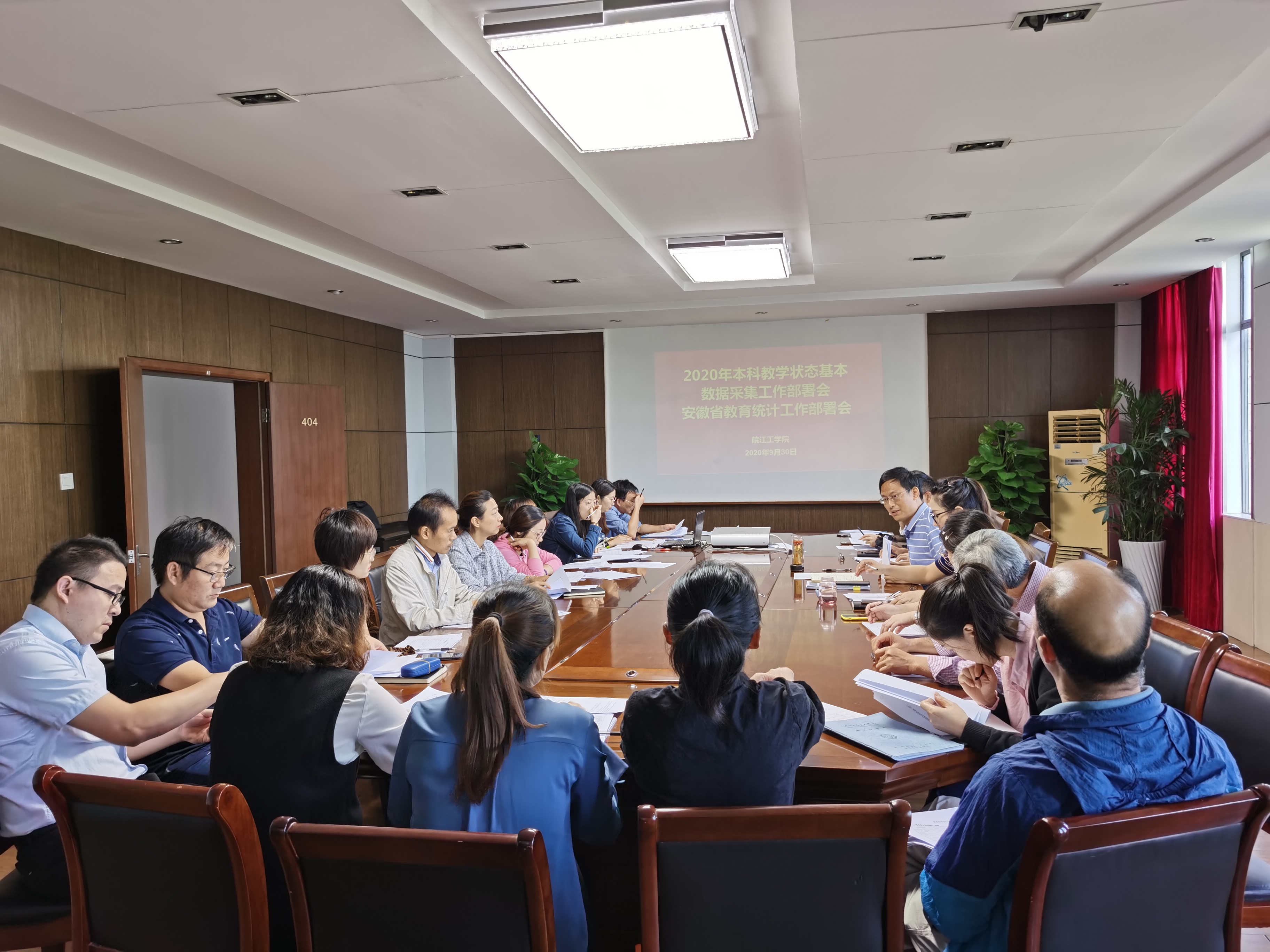 9月30日上午,beat365在行政楼404会议室召开2020年安徽省教育事业统计工作、2020年本科教学状态基本数据采集工作部署会。学校相关部门负责人和全体统计工作人员参加会议。会议由院务部、党务部部长伍旭坤主持。