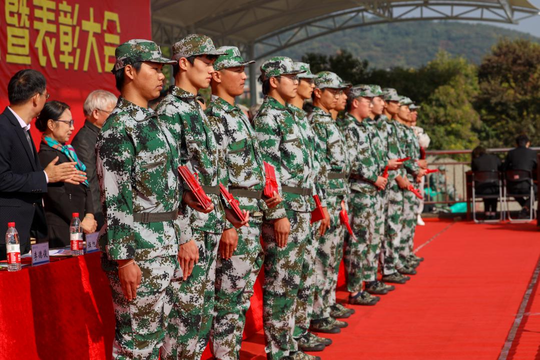 随后,学校对荣获“军训先进工作者”“优秀带训教官”“军训积极分子”“军训内务标兵”称号的个人和集体颁发荣誉证书。