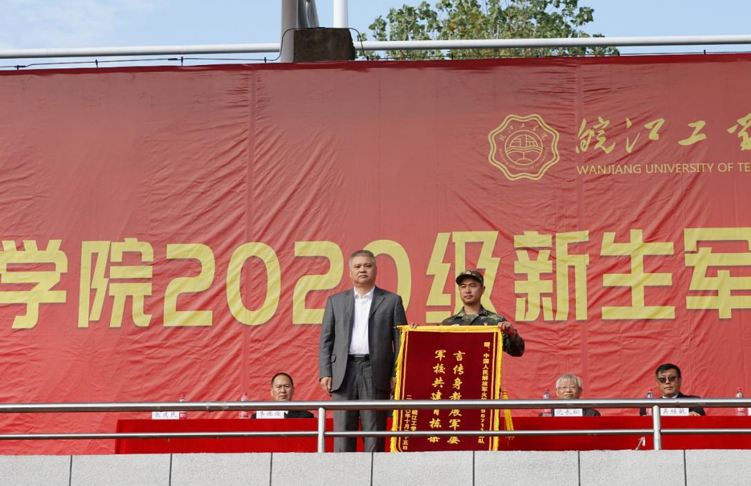 朱洪高代表学校向承训部队赠送锦旗,并再次向中国人民解放军某部队官兵表示感谢。