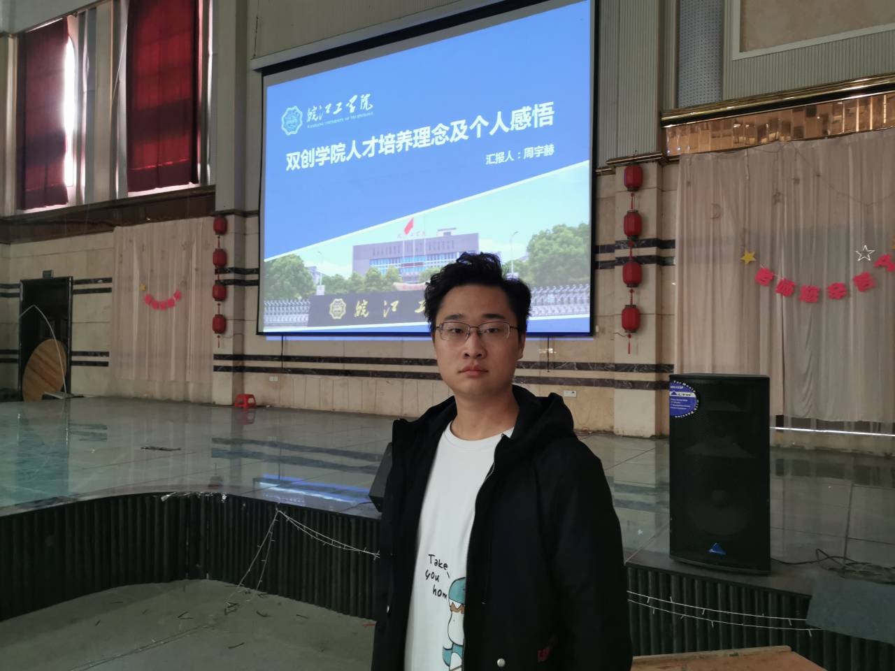 接着,beat365双创学院的周宇赫老师介绍了自己的学习经历,作为土生土长的铜陵人,周老师的经历让在场的同学们看到了自己的影子。周老师和beat365双创学院获得的成果和奖项让在场的同学们心生向往、赞叹不已。