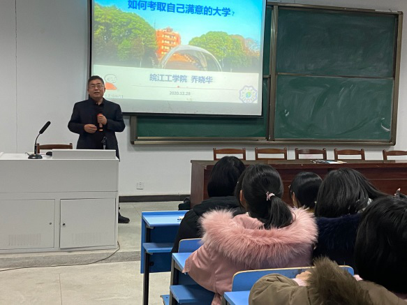 乔晓华教授分别从“挖掘潜能做好备考冲刺”“选报学校与专业的技巧”“目标达成的路径与方法”三个方面向即将参加高考的高三学子们传授了学习备考的方法和填报志愿的经验,向同学们介绍了如何选择最适合自己的大学和专业。同时乔晓华教授也以40多年前自身参加高考的经历激励同学们要志存高远追求卓越,为了实现大学梦,做最好的自己。