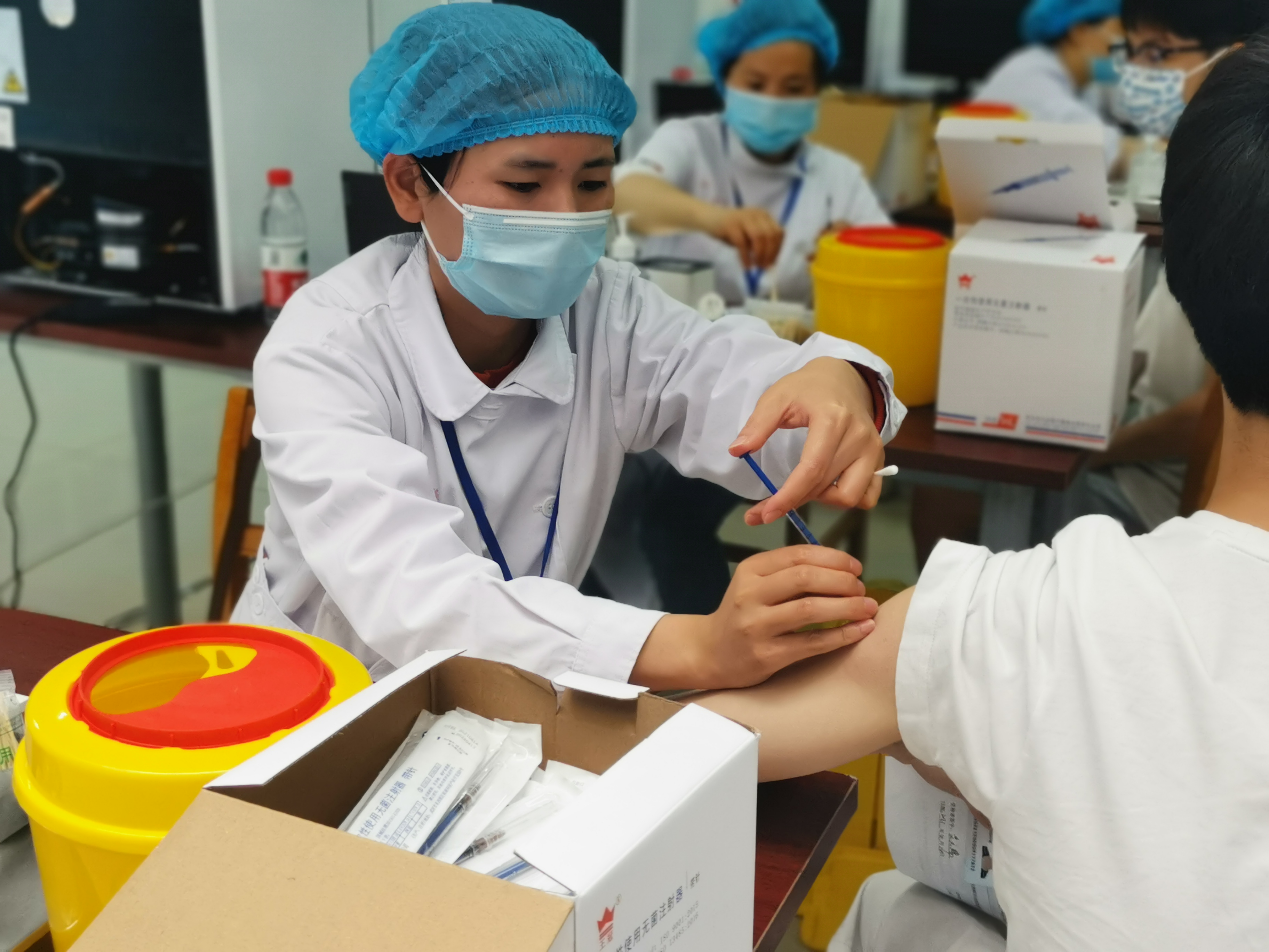 阚青鹤带队走进beat365新冠疫苗接种点,查看了候种区、接种区、留观区、冷链区等区域,听取了现场人员的工作汇报,询问了接种进展和工作困难。