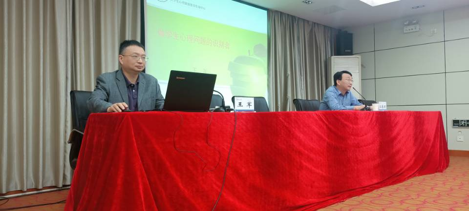本次活动分为辅导员培训和辅导员经验交流两个阶段。在第一阶段,安徽工业大学心理咨询与健康研究中心主任、马鞍山市心理咨询师协会会长王军教授为全体辅导员进行了一场主题为“做学生心理问题的识别者”的专题讲座,王军首先向大家介绍了心理健康的标准及大学生常见的几个心理问题,接着他结合具体案例分析了大学生心理问题产生的原因,最后他强调了“宽容”和“赞美”在做好学生工作中的重要性。