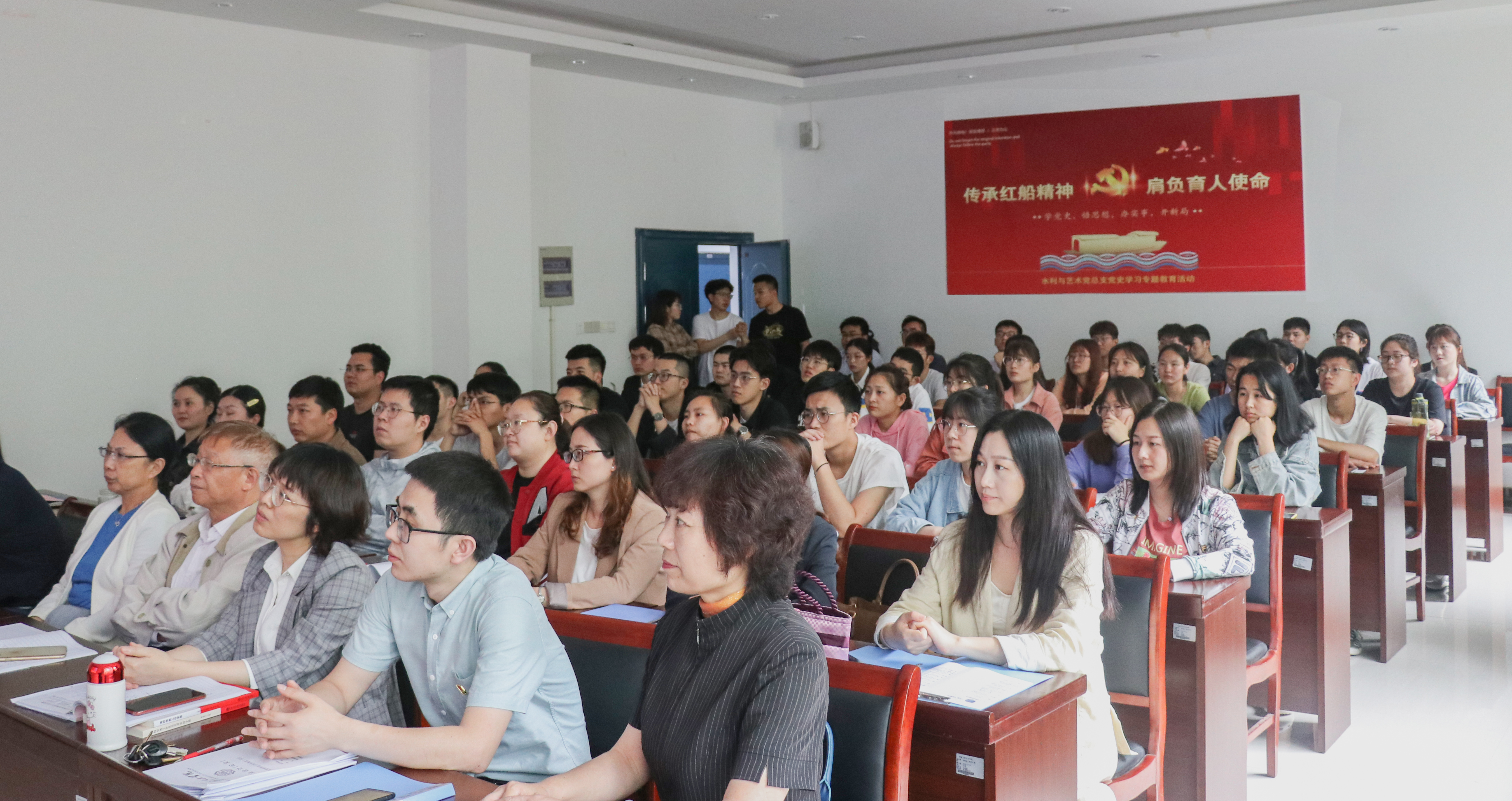 活动由四部分组成。大家首先围绕红船精神的内涵、红船精神的历史定位、红船精神的时代价值等内容进行了深入学习;观看了北京大学张会峰教授主讲的《红船精神》专题录像片;水利工程学院院长沈长松、艺术设计学院院长江冰分别结合工作实际和学院的发展与专业建设作了交流发言,艺术设计学院院长助理金花与水利学院辅导员周菊红两位教师党员就自己承担的工作任务交流了各自的体会、思考与建议,王鹏和贾若昀两位学生党员表示要学习红船精神,承传红船精神,要充分发挥党员的先锋模范作用,带动同学共同进步。