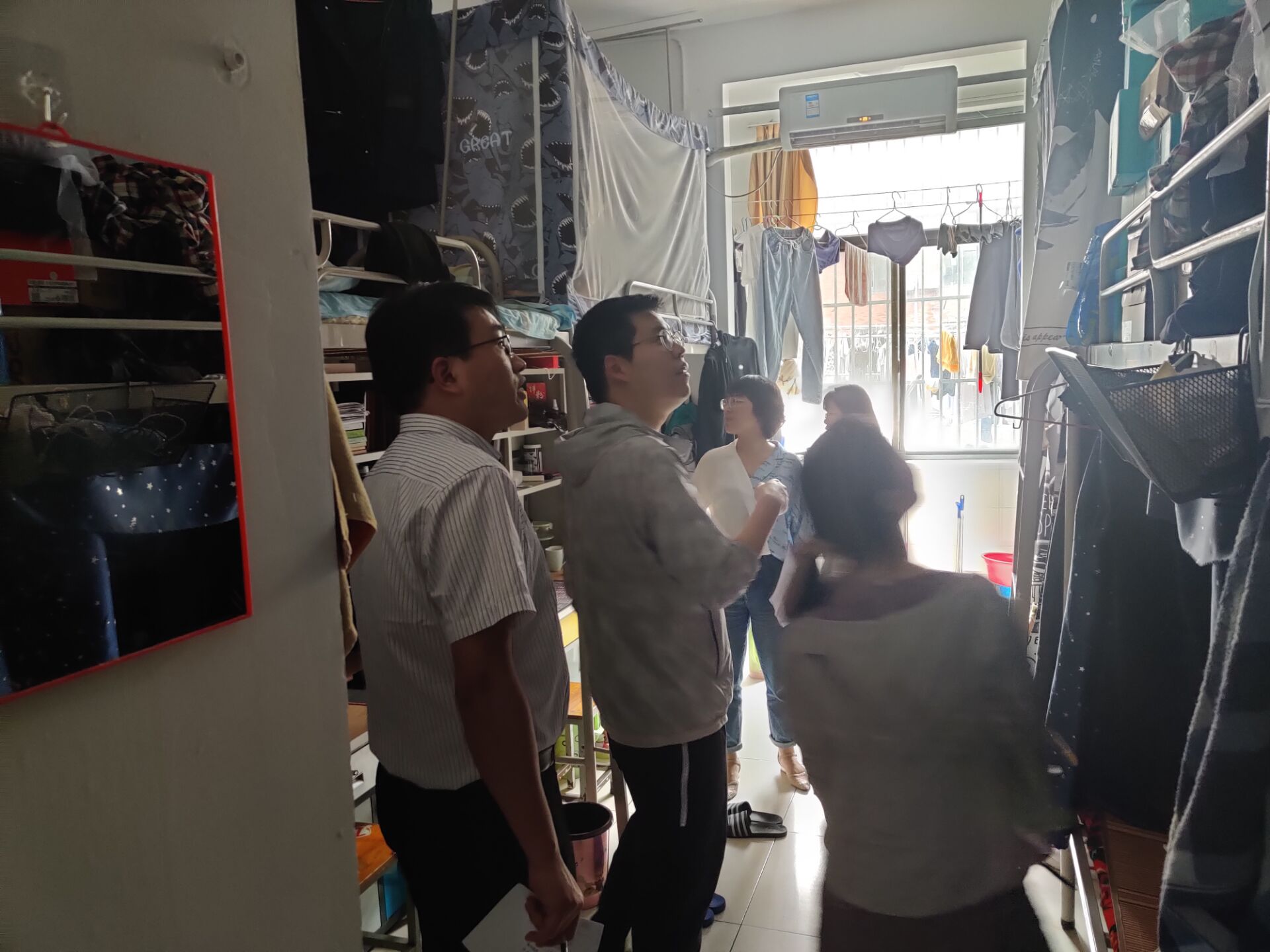 张建民带队检查了学生宿舍区。通过检查发现,绝大部分宿舍安全及卫生状况良好,寝室内无违规电器,学生普遍能够遵守宿舍安全管理规定,但也有个别宿舍存在卫生状况不佳等问题。检查过程中,老师们耐心细致地向同学们讲解宿舍安全及卫生知识,针对宿舍存在的不足之处,现场也提出了整改意见。
