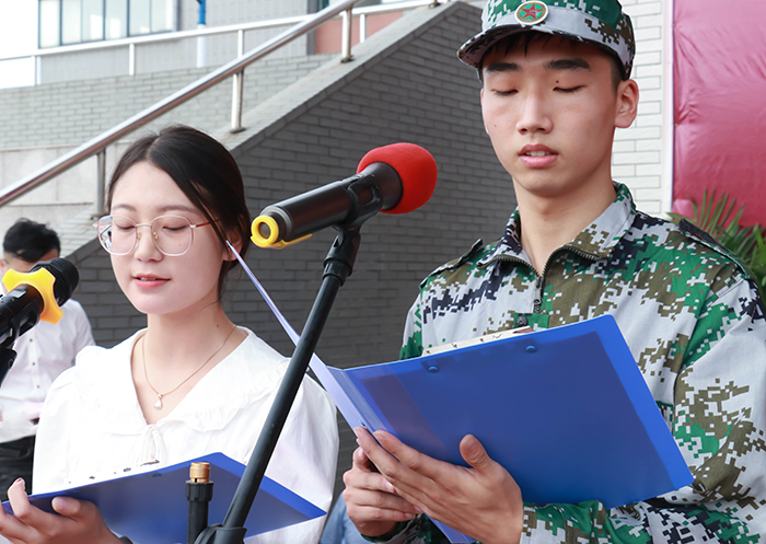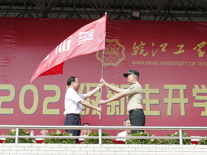 在军训动员阶段,侯进元宣读军训团成员名单,刘志祥向军训部队授旗。在迎风招展的红旗下,2021级新生开学典礼暨军训动员大会圆满结束。