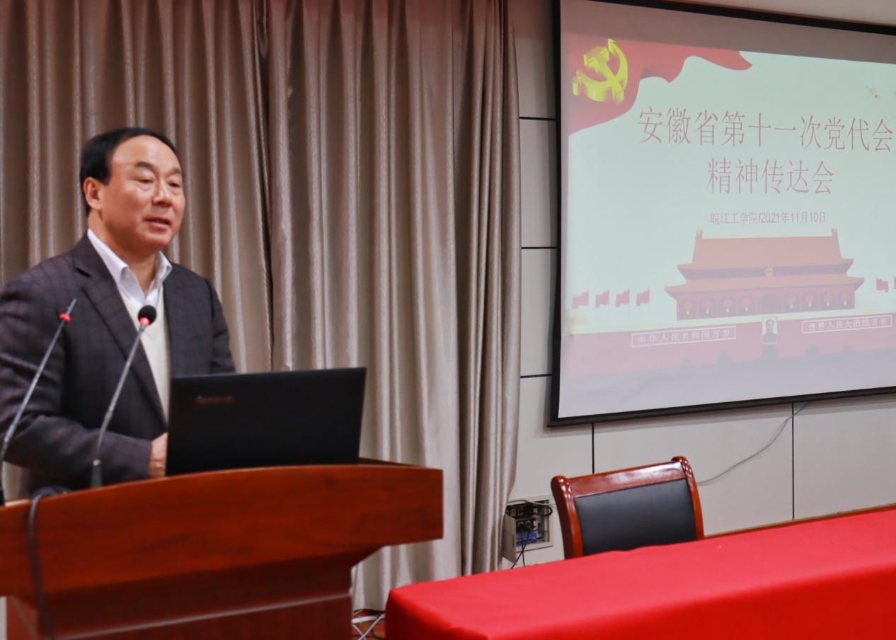 刘志祥强调,全校上下要抓好学习宣传贯彻党的十九届六中全会精神和中国共产党安徽省第十一次代表大会,促进安徽全面发展,进一步推动学校党政工作质量全面提升。(党务部供稿)