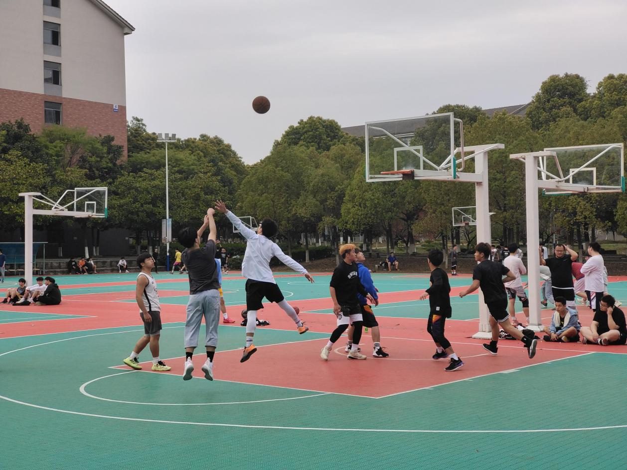 篮球场上,同学们挥洒汗水,让青春飞扬