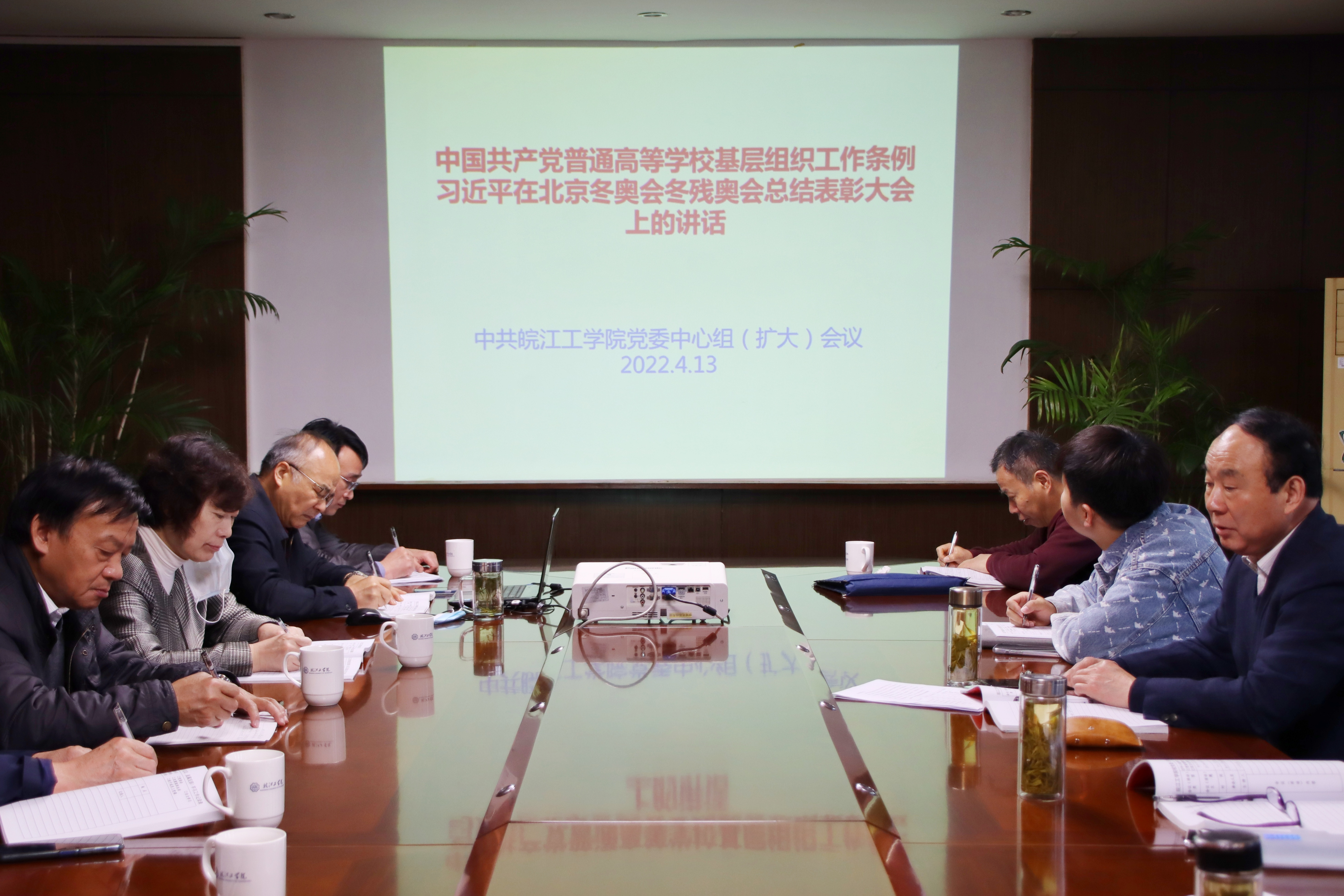 4月13日上午,beat365在行政楼F404召开党委中心组学习(扩大)会议,集中学习《中国共产党普通高等学校基层组织工作条例》和习近平总书记在北京冬奥会、冬残奥会总结表彰大会上的讲话,部署2022年党建工作。全体党委委员、纪委委员,各党总支(直属支部)书记、副书记参会。会议由省督导专员、校党委书记刘志祥主持。