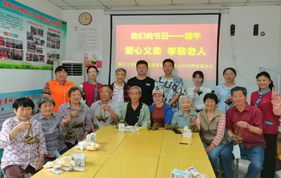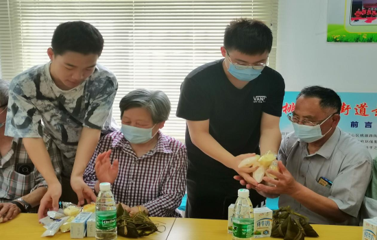 活动结束后,校团委青志协将爱心募捐所得购买物品,在团委指导教师龚澎甦老师的带领下一起前往景城社区看望老人们,提前给老人们送去端午安康。