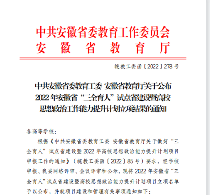 喜报!马克思主义学院获批安徽省 “三全育人”高校思想政治能力提升计划项目