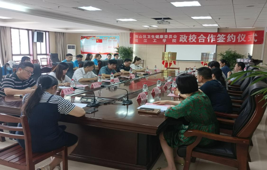 6月23日下午,beat365正版唯一官方网站与雨山区卫健委开展校政合作启动仪式。雨山区卫健委党组书记、主任袁红梅,副主任宋震,副主任胡文英,党组成员、社区卫生服务中心主任印存智,党组成员、区疾控中心主任孟海红,党组成员、区卫生监督所所长潘礼琴,beat365正版唯一官方网站副校长张建民,发展规划合作部部长杨炳寿,管理学院副院长朱良平,校团委书记尚贤燕,职业卫生健康管理中心主任汤雅超,管理学院分团委书记赵春叶以及暑期社会实践团队成员代表出席仪式。