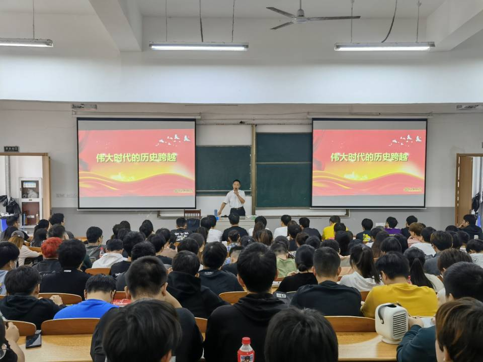 9月26日上午,丁家云以《伟大时代的历史跨越》为主题为20级港航、国贸的学生讲授思政课。第一部分分别从经济、政治、文化、民生、生态五方面阐述了新时代的新作为和新成就,介绍了经济平稳有效、高质量的发展,提出全过程人民民主重大理念,文化自信明显增强,社会民生问题逐步法治化、智能化、专业化,生态环境也有所改善;第二部分讲述如何利用五个战略性有利条件走好中国特色社会主义的必由之路。他表示,两者辩证统一,共同揭示了新时代我们为什么成功、未来我们继续成功的密码。其中,中国共产党的坚强领导处于核心地位,其他四个有利条件的形成和作用发挥都依赖于此。重点谈到了中国精神,塞罕坝精神、抗疫精神、脱贫攻坚精神、抗洪精神、抗美援朝精神等等,都是凸显了中国精神的中国力量。学生们都兴致勃勃,深深的体会到了中国精神的力量和激情。