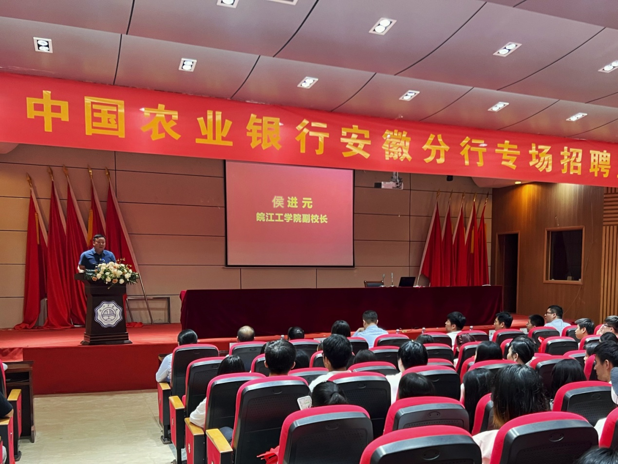 为全面贯彻落实学院2023届毕业生就业工作,为2023届毕业生提供就业机会、缓解就业压力、提供就业平台,9月27日晚6:30,财经学院与中国农业银行安徽省分行在图书馆报告厅举行线下校园招聘会。副校长侯进元、副书记许戎、学工办副主任谢清雅、中国农业银行马鞍山分行党委委员兼副行长赵科、中国农业银行花山区支行党委书记行长储玉保、中国农业银行马鞍山分行人力资源部总经理王传新、19级辅导员、19毕业班学生参会。