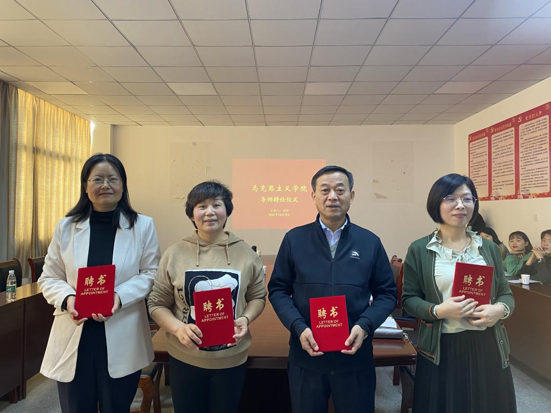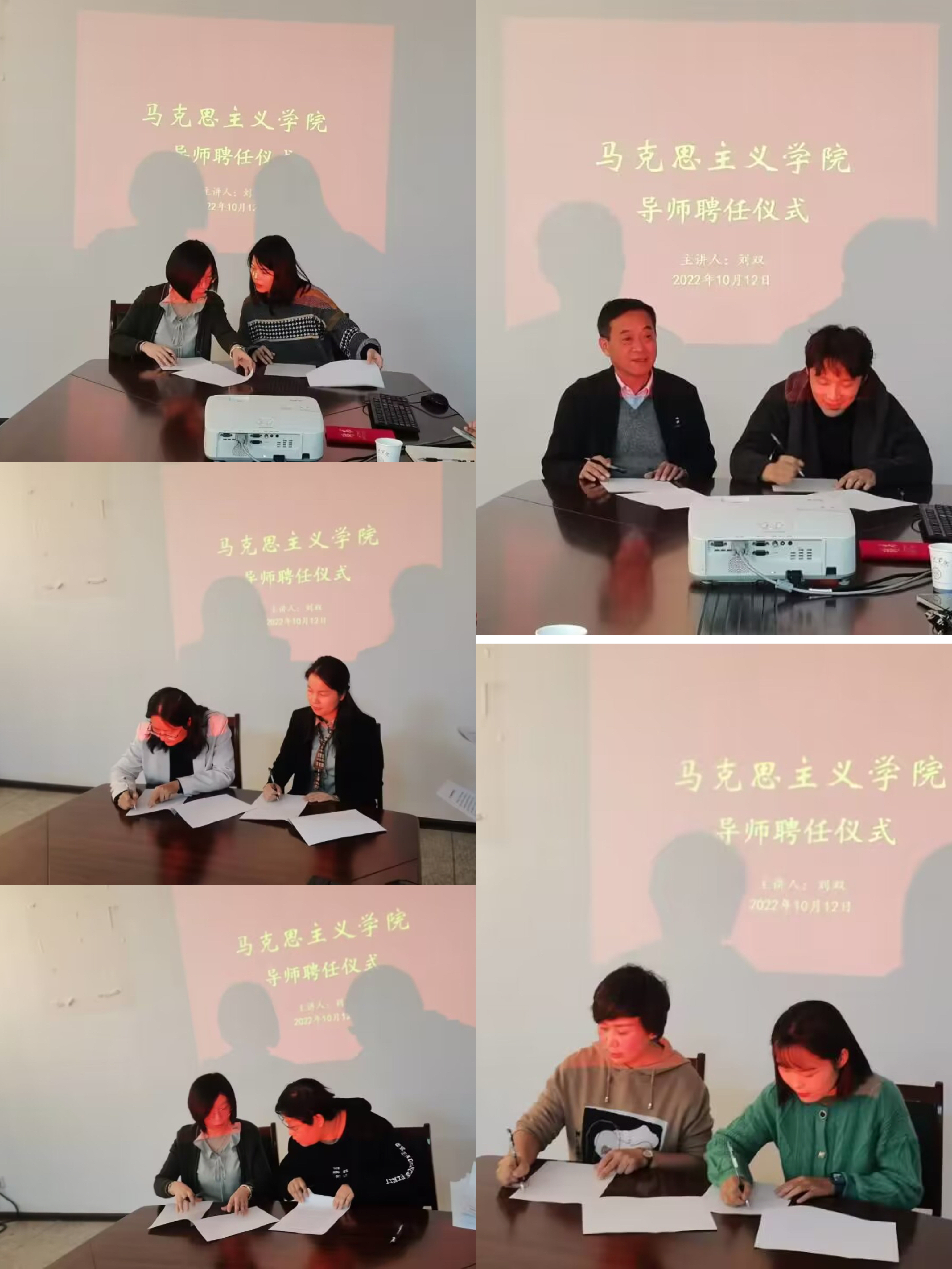 会上,刘双表示,马院导师聘任依据学校的文件,结合马院师资情况,拟确定青年教师导师资格,同时按照双向选择的规范化程序确定导师所带青年教师人员,最后经过马院教学委员会讨论通过后,上报学校教学委员会审批通过后最终确定。她宣读了《关于聘任张春艳等为马克思主义学院导师的决定》文件。随后,孙良依次为受聘导师颁发了导师聘书并签订协议书,发放培养书册。