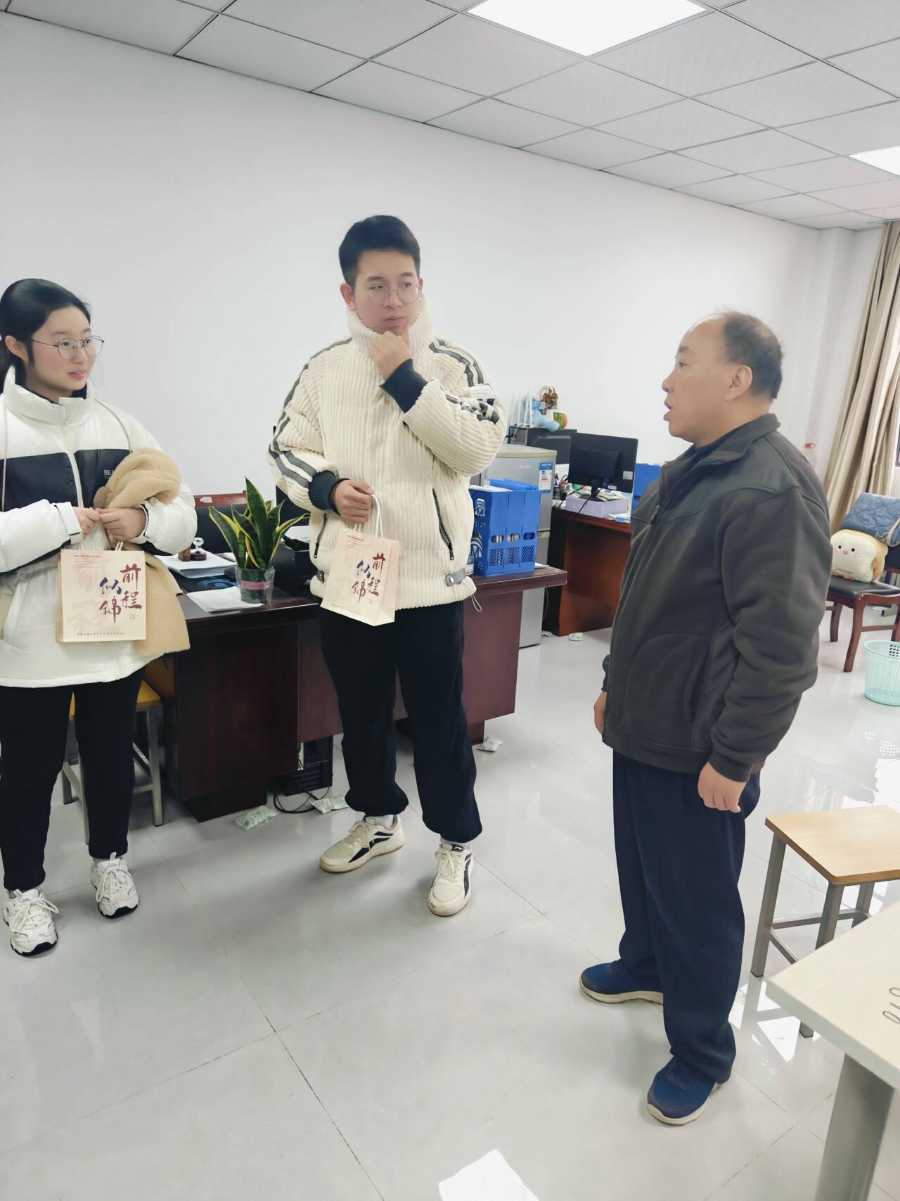 全国硕士研究生入学考试在即,备考气氛愈加浓烈。为激励2024届考研同学调整心态,做好临考冲刺,12月19日下午,管理学院举办“情暖冬日,逐梦研途”考研送温暖活动。管理学院常务副院长刘晓农,毕业班辅导员尚蓉老师、杨冬竹老师和沙晨羽老师出席了分别在管理学院毕业班辅导员办公室、考研学子宿舍及图书馆举办的为冲刺阶段的考研学生送去暖心礼包活动。