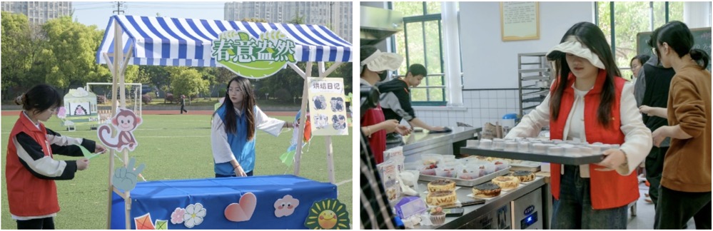 本次活动是马鞍山市特殊教育学校每年定期开展的职业教育成果展。活动前期,我院22级数字媒体艺术专业学生应邀为本次活动设计了活动KT板和海报,用明亮、清新的色彩表现春天元素,以创意、艺术的方式展现活动主题,为活动现场增添了一抹亮色。我院20级数字媒体艺术专业刘竞轩同学负责活动现场全程拍摄及视频剪辑工作。