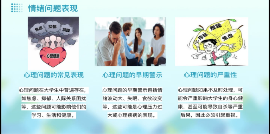 通过此次会议,对于大学生们的心理健康意义十分重要,可以帮助学生了解和认识自己的心理状态,提高自我认知能力,增强应对压力和解决问题的能力。通过让学生分享他们的经验和感受,帮助他们更好地理解自己的情绪和需求,这有助于预防潜在的心理问题,并及时发现并解决。同时,也呼吁广大同学积极参与心理健康相关会议,提高自身的心理素质,共同营造一个健康、和谐的校园环境。