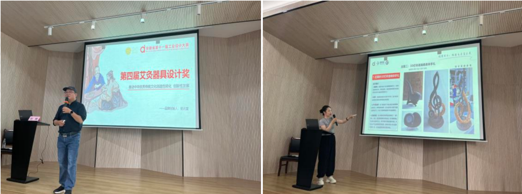 接着,刘峰会长就安徽省第十一届工业设计大赛部分分项赛的赛事主题,参赛要求做了详细的解读,包括“飞龙杯”井盖设计大赛、艾灸器具设计奖等分项赛的赛事背景、主题、作品要求、赛事流程等。同时。刘峰会长整理了大量相关作品案例,为全体师生做了深刻的分析与解读。
