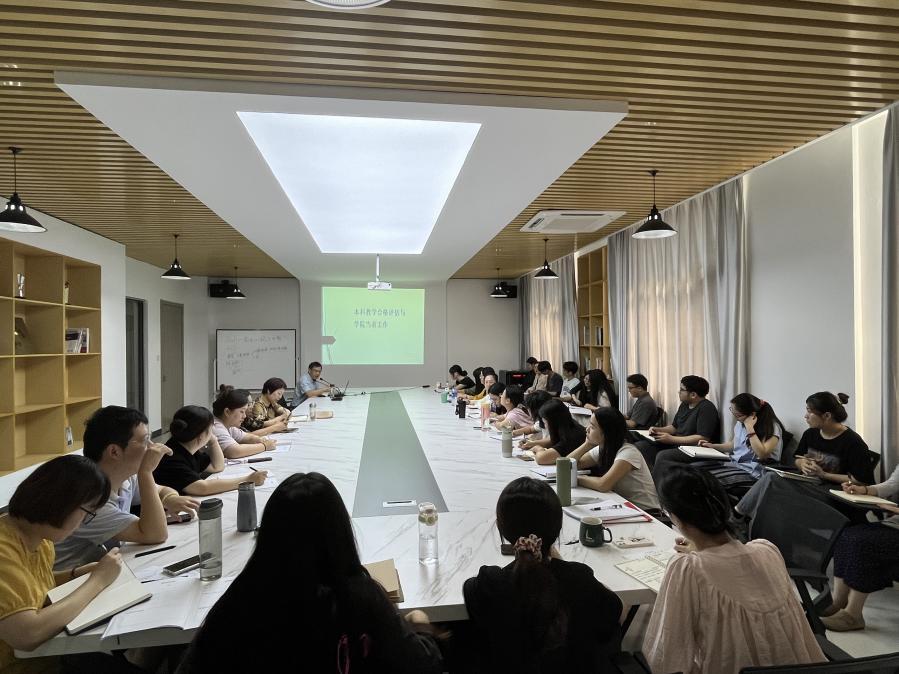 院长伍旭坤专门做了《本科教学合格评与学院当前工作》的报告。他详细解读了合格评估的指标体系和关键观测点的内涵,并表示学校正处于迎接本科教学评估的关键期,希望全体教职工能够把握合格评估关键点,在主动作为中强化政治担当,在培训交流中拓宽工作思路、在潜心治学中提升综合素质。