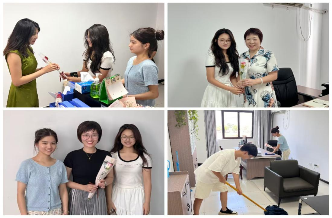 “老师,教师节快乐,您辛苦了!”教师节清晨的第一缕阳光中,艺术设计学院学生会分团委学生干部们手持鲜花,走访每间办公室向老师们献花,并主动拿起清洁工具为老师清扫办公室,以实际行动向老师们送上节日的问候,深情表达对老师们的敬意和祝福。