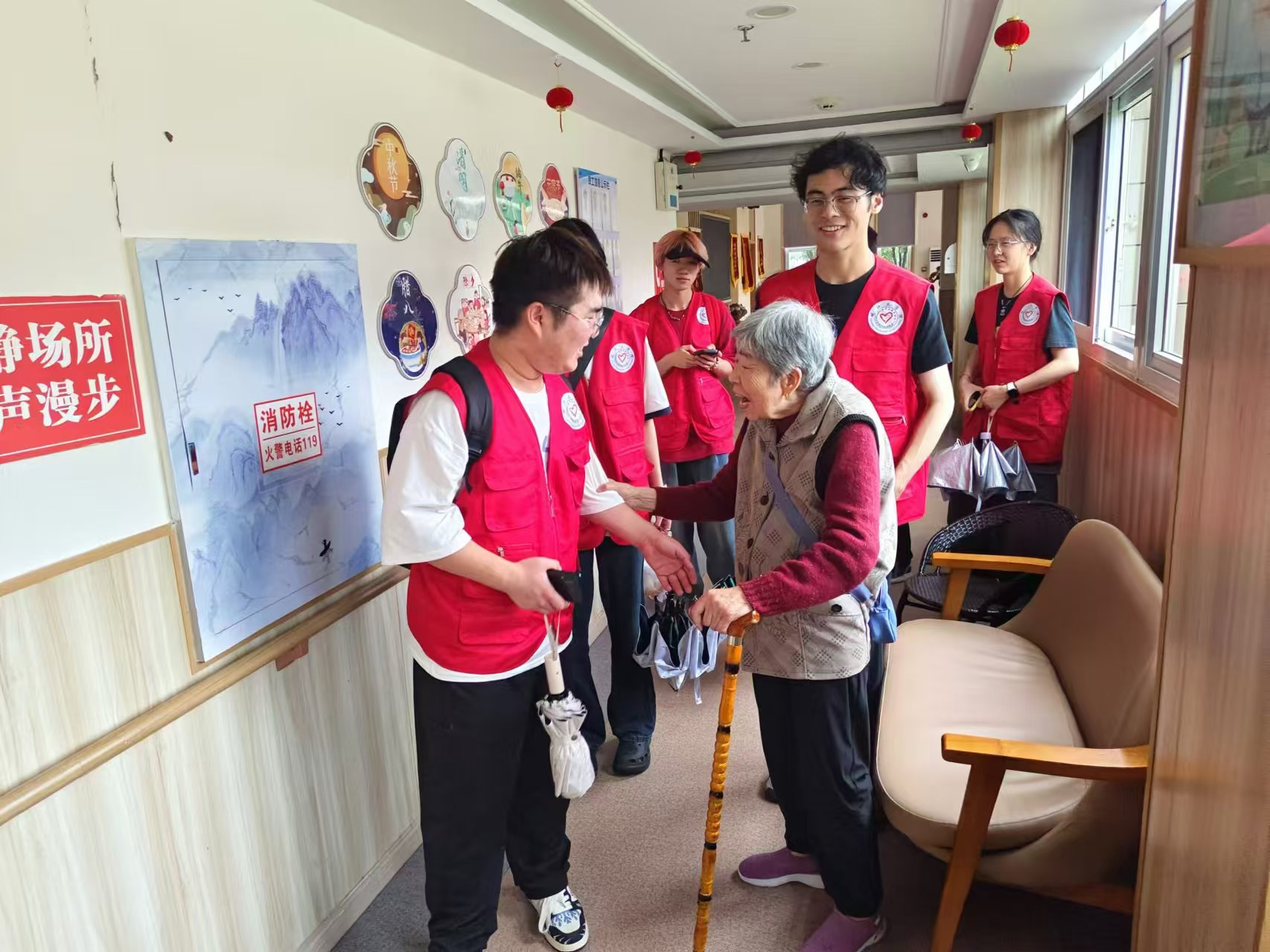 为深入了解社会,开展走访村委,慰问老人等活动。实践团队来到莲邦安老颐养中心,这里居住的大多是七十左右生活不便的老人,很多要依靠轮椅移动,腿脚不便,队员们被此景触动,在表演节目前主动搀扶老人,缓慢移动到表演场地。带着对长辈最深切的关怀与敬意,队员们为长辈们表演丰富多彩的节目,唱歌跳舞,让长辈们在欢声笑语中感受到来自年轻人的青春活力,与长辈们聊天谈心,缓解压力,还与老人们一起配合拍摄了短视频,丰富日常生活。此行,实践团队不仅为老人带来欢乐与温暖,更用实际行动诠释了尊老敬老的传统美德。