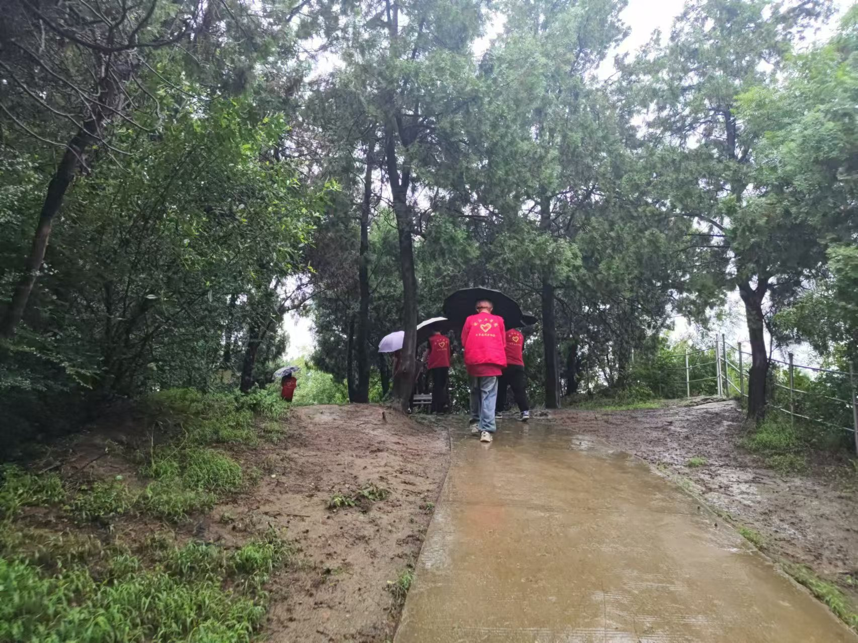 图为团队一行人登山前往纪念碑。张世纪 供图