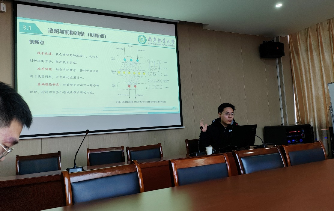 课题组董博士带来专利写作分享交流会。他结合丰富专利申请经验,从专利撰写基本原则、核心要素到实际案例,深入讲解专利从书写到申请的关键环节,着重强调权利要求书、说明书、附图说明书的写作要求,创新点挖掘与表达,分享将技术方案转化为专利权利要求的技巧,并剖析常见写作误区与规避方法。交流环节,董博士耐心答疑,助力大家理解专利写作要领。