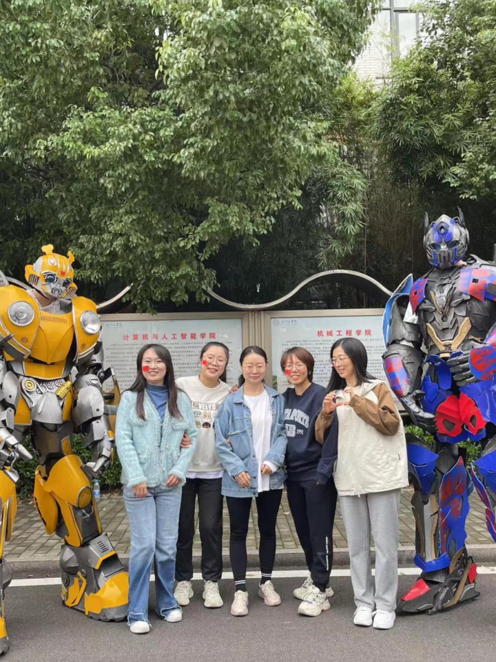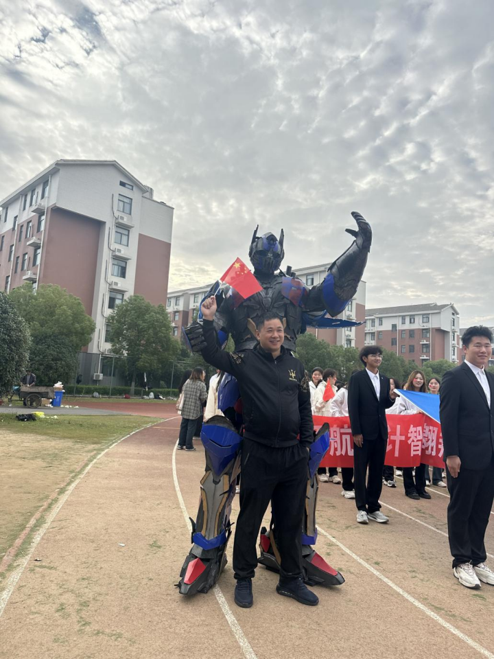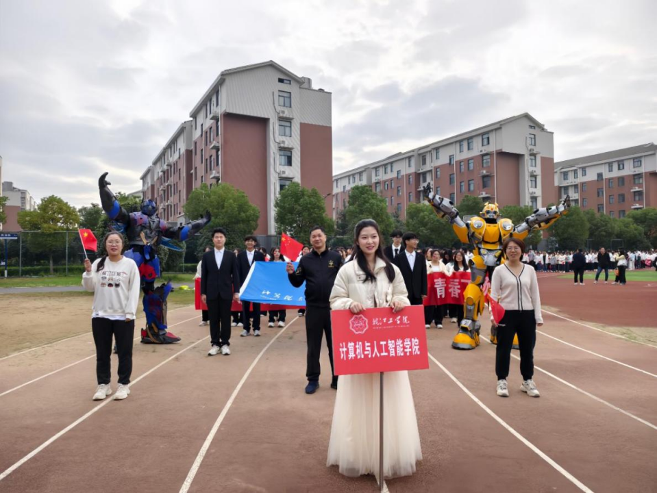 此次方阵队的最大亮点当属两个机器人“擎天柱”和“大黄蜂”,它们在方阵前方稳步前行,独特的造型和流畅的动作,瞬间吸引了全场的目光,仿佛在诉说着科技的魅力。这不仅展示了计算机与人工智能学院的专业特色,也为运动会增添了一份别样的精彩。学生和教师们纷纷与机器人合照,记录下这难忘的时刻。