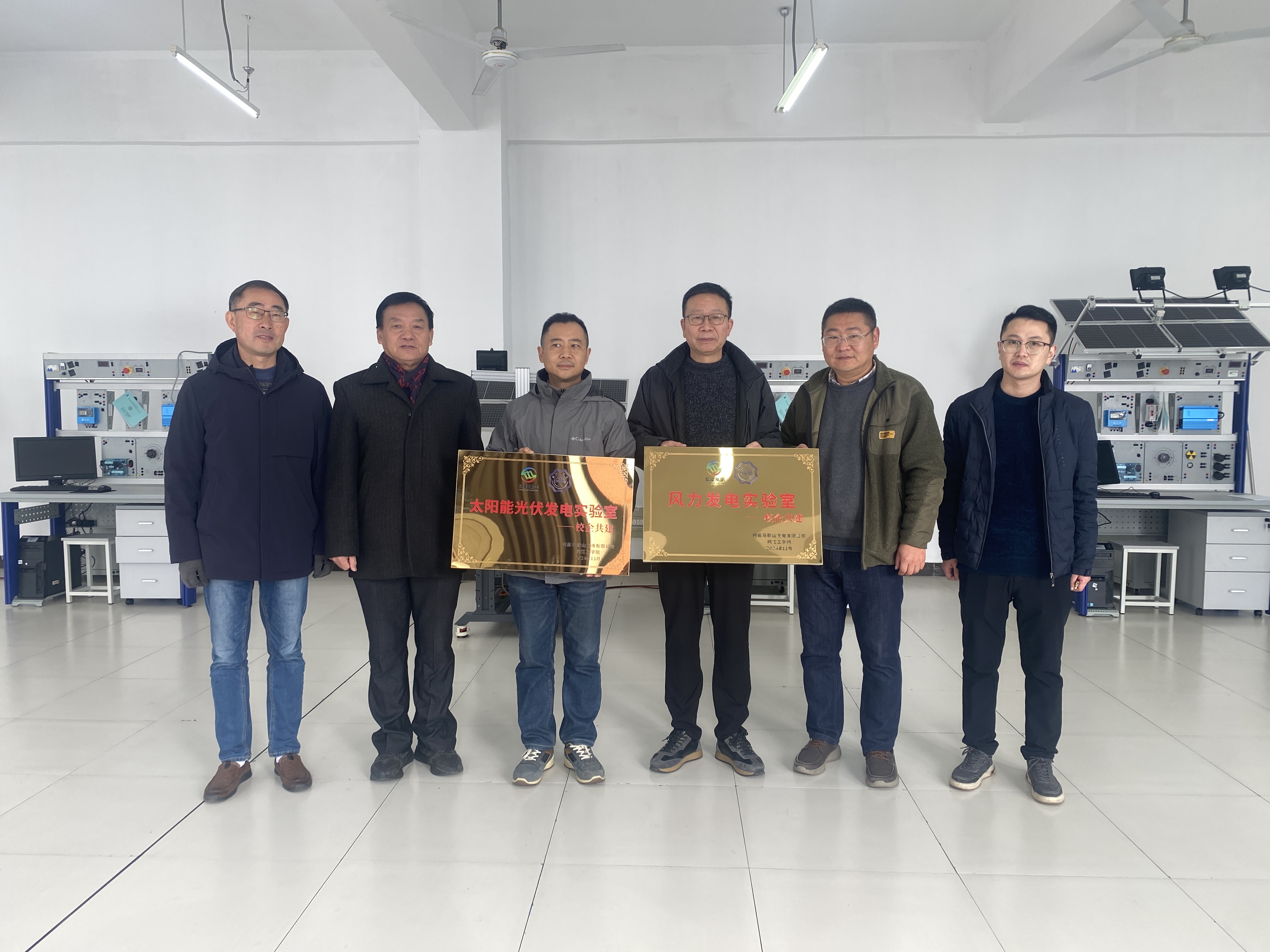 2025年2月26日上午,beat365正版唯一官方网站资产部部长陆军,教务部副部长葛文生,机械工程学院常务副院长赵恒文,机械工程学院新能源教研室主任韩世昌,马鞍山皖能新能源公司总经理尹小成,副总经理朱报建共同为光伏发电实验室、风力发电实验室举行挂牌仪式。