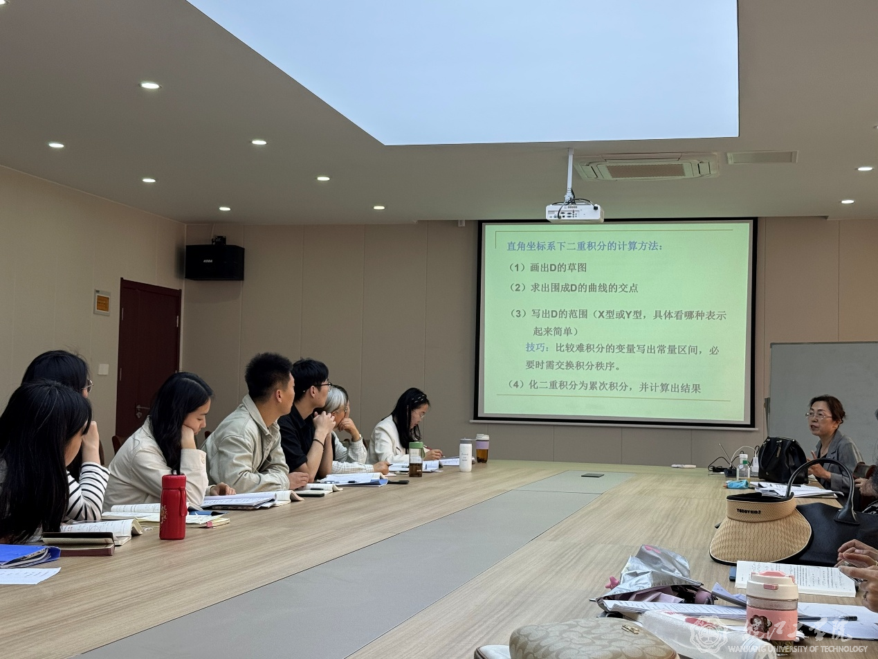 最后,范爱华以高等数学中极坐标系下二重积分的计算为例,从极坐标概念的引入、例题“由浅入深”的设计等方面进行了教学展示,会议气氛热烈,各位老师收获颇丰。
