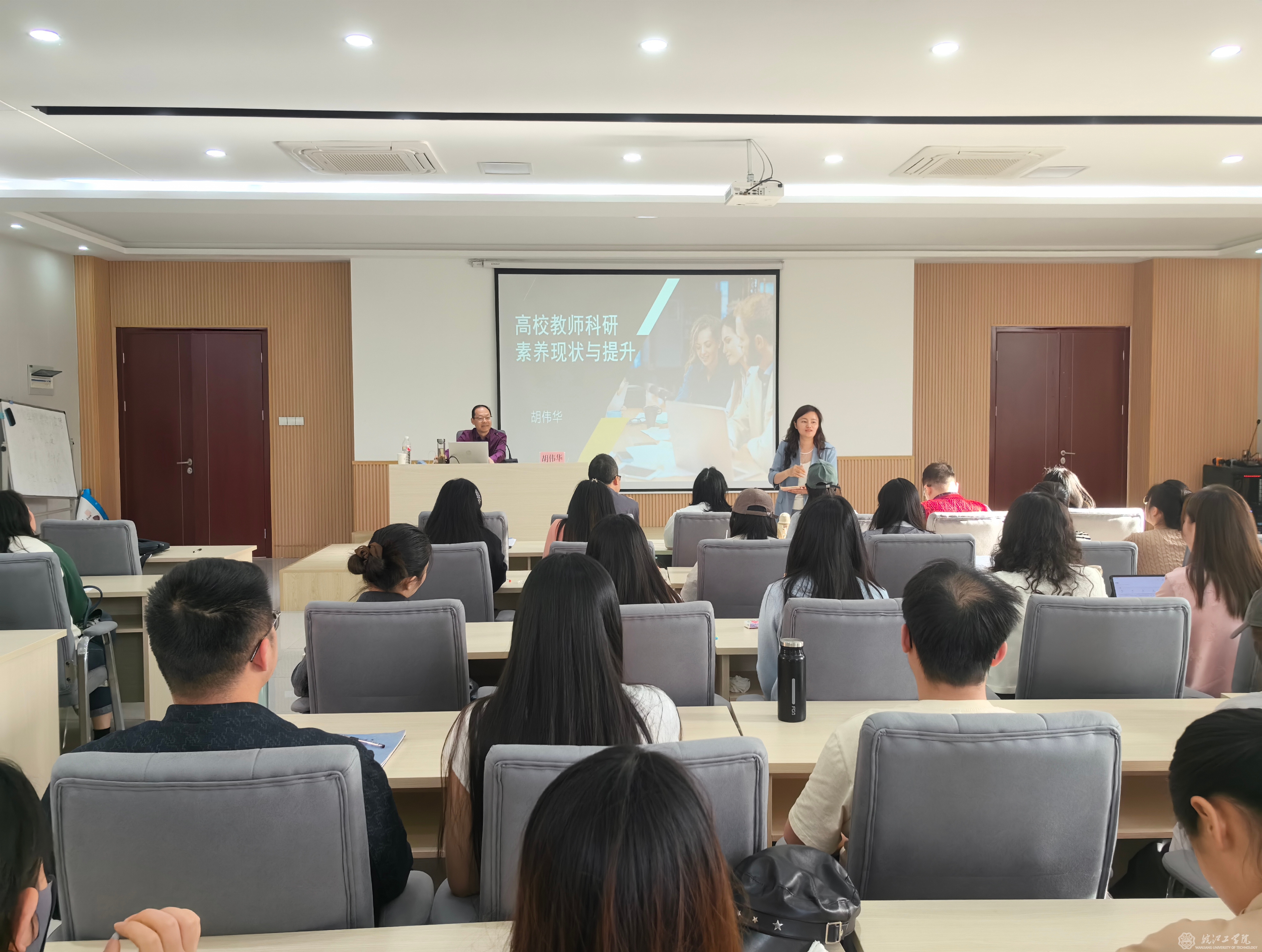 4月25日下午,应通识教育学院之邀,西安工程大学图书馆馆长、人文学院前院长、博士生导师、二级教授胡伟华莅临beat365,在弘毅楼209报告厅开展了题为“课程依托、教研相长、教学科研双丰收”的学术讲座。通识教育学院外语教研室全体专任教师及其他教研室的青年教师出席并聆听了此次讲座,讲座由通识教育学院院长助理毕胜琴主持。