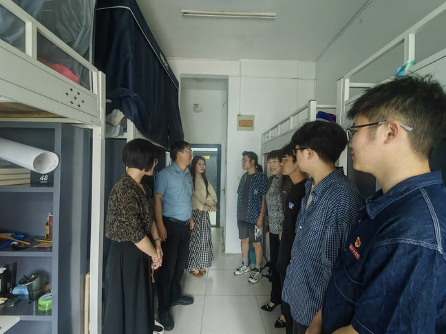 学院领导与辅导员一行深入学生宿舍开展安全专项检查,对宿舍内的用电安全、消防安全、卫生环境等方面进行检查。学院领导和辅导员们耐心向同学们讲解宿舍安全注意事项,提醒大家离校时关好门窗、切断电源,做好个人物品保管。对于检查中发现的违规行为和安全隐患,进行了现场整改和记录,要求相关责任人限期整改到位。学院领导还详细询问了学生“五一”假期安排情况,提醒学生安全出行,准时返校,以饱满的热情、昂扬的精神迎接专家组的检查和检阅。
