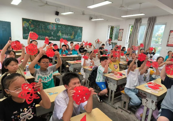 为传承中华传统美德,本团队进行了剪纸游戏,事先准备好了彩纸、剪刀等工具并分发给孩子们。团队成员手持剪刀和彩纸,一边耐心讲解剪纸的基本技巧和注意事项,一边灵活裁剪,最后,一张窗花就剪成了。随后的自我实践环节,孩子们迫不及待地拿起工具,投入到剪纸创作中。有的孩子模仿范例,小心翼翼地剪出窗花,有的则充分发挥想象力,设计出充满童趣的独特图案。过程中,遇到困难的孩子会向团队成员求助,团队成员们手把手地指导,从折叠纸张的角度到图案的绘画再到下剪的力度,细致入微地帮助孩子们完成作品。此次剪纸游戏活动,不仅让民族小学的孩子们体验到了传统剪纸艺术的魅力,锻炼了动手能力和创造力,更在他们心中种下了传承民族文化的种子。