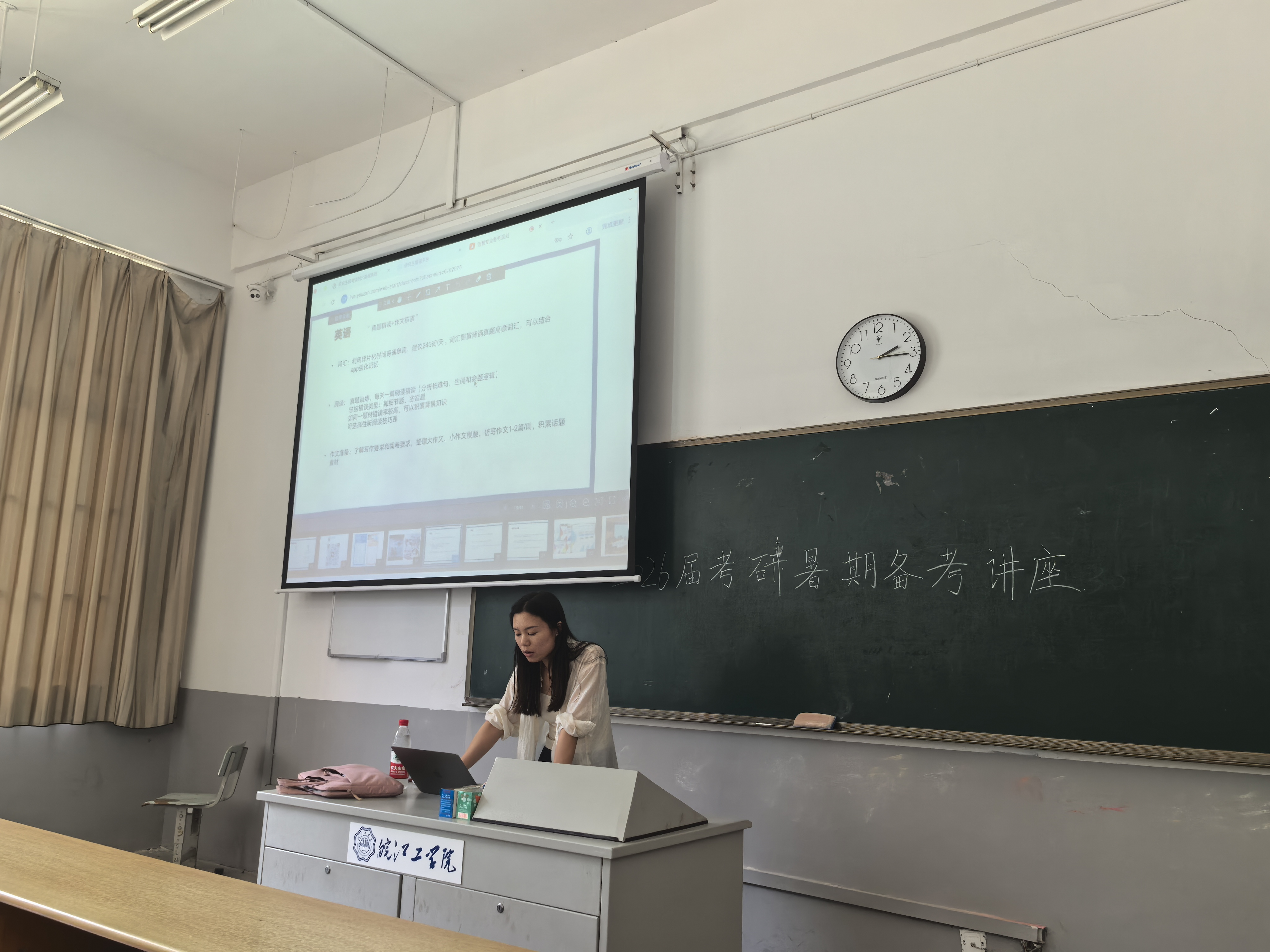 曹菲菲老师详细介绍了考研的流程、各科目的复习方法和技巧,以及如何合理安排时间、确保复习效率;特别强调了暑期复习的重要性,提供了详细的复习计划和策略,帮助同学们高效利用暑假时间。刘静娜老师分享了一些考研资料的获取渠道,如图书馆、网络资源等,帮助同学们更好地备考。
