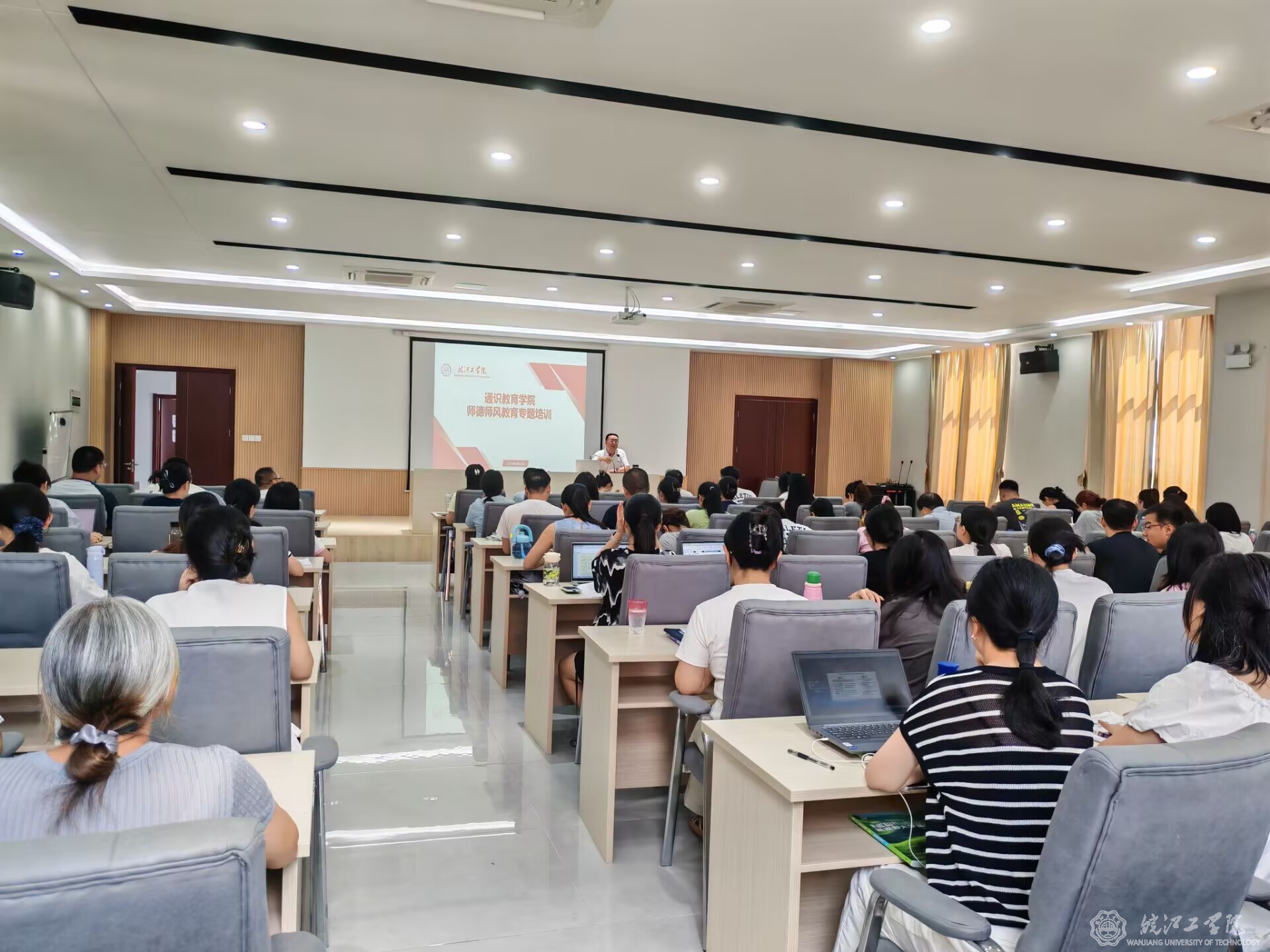 8月19日上午,院长助理毕胜琴的讲座聚焦“校史校情和合格评估应知应会”。她深入浅出地梳理了学校自建校以来的发展脉络、重大成就及当前面临的机遇与挑战,助力教师们精准把握校情校史的核心精髓。同时,她详尽剖析了合格评估的标准体系、关键指标及教师必备知识点,涵盖教学规范、学生管理与质量保障等具体要求,引导大家将评估准则深度融入日常教学实践。讲座中,毕胜琴老师结合生动实例,阐释了评估对提升教学质量、推动学院发展的积极意义,并鼓励教师们以主人翁姿态投身评估准备工作。全体教师专注聆听、踊跃参与互动研讨,纷纷表示深受触动,不仅深化了对学校使命的领悟,更增强了迎接评估的坚定信心与责任担当。培训尾声,全体教师还通过知识竞答的形式巩固了学习成果。