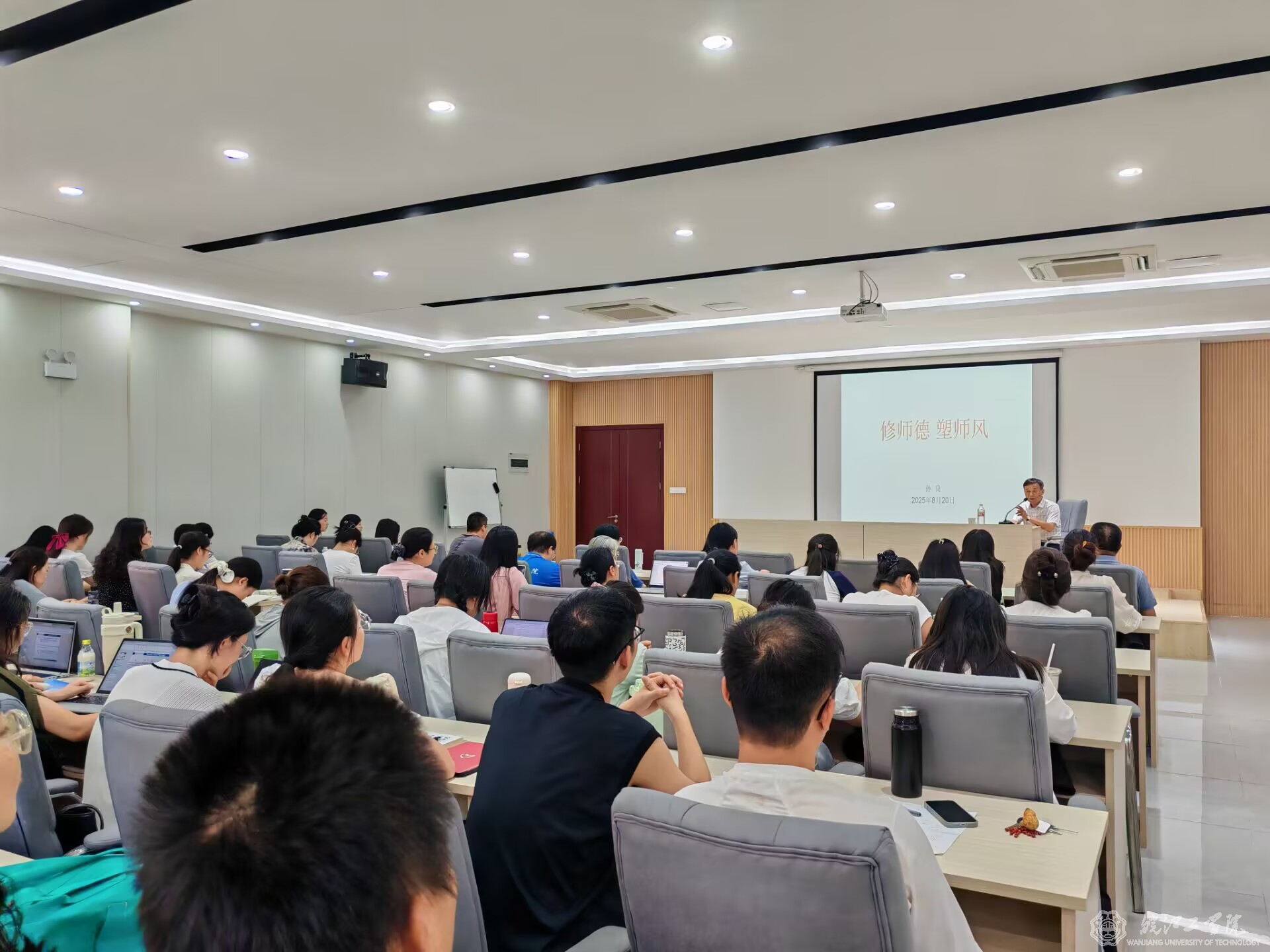 8月20日下午,校党委副书记孙良为全体教师党员精心呈现了一场紧扣党纪学习与师德师风主题的压轴讲座。孙书记以深入浅出的讲解方式,条分缕析地阐释了党纪的核心要求,包括政治纪律、组织纪律等方面的具体规范,以及师德师风的具体实践,如坚守教育初心、廉洁从教等要点。讲座内容翔实丰富,结合了生动的案例分析和政策解读,引发了在场教师的广泛共鸣与深刻思考。现场互动环节中,教师们踊跃提问,围绕党纪执行与师德建设展开热烈讨论,孙书记逐一耐心解答,气氛十分活跃。最终,这场富有教育意义的讲座在全场经久不息的热烈掌声中圆满落幕,为全体教师提供了一次深刻的党纪与师德教育体验。